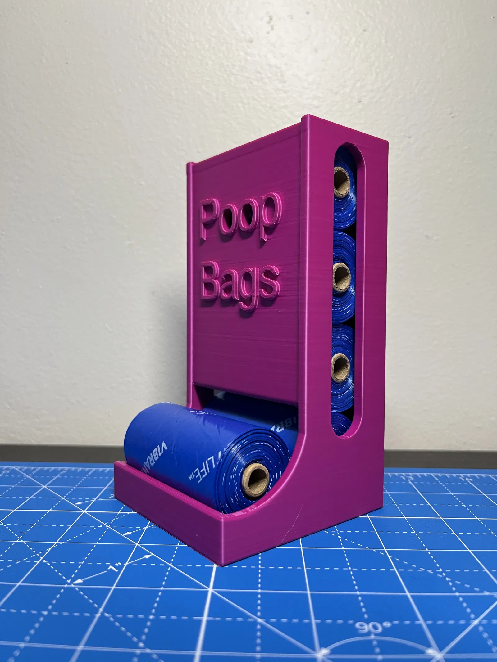 Giải pháp đơn giản để giữ gọn gàng các cuộn túi đựng phân cho thú cưng. Có thể treo tường và đựng được 5 cuộn. Hướng dẫn in chi tiết, khuyến nghị sử dụng Paint Support cho các phần nhô ra để dễ dàng gỡ bỏ và thẩm mỹ hơn.