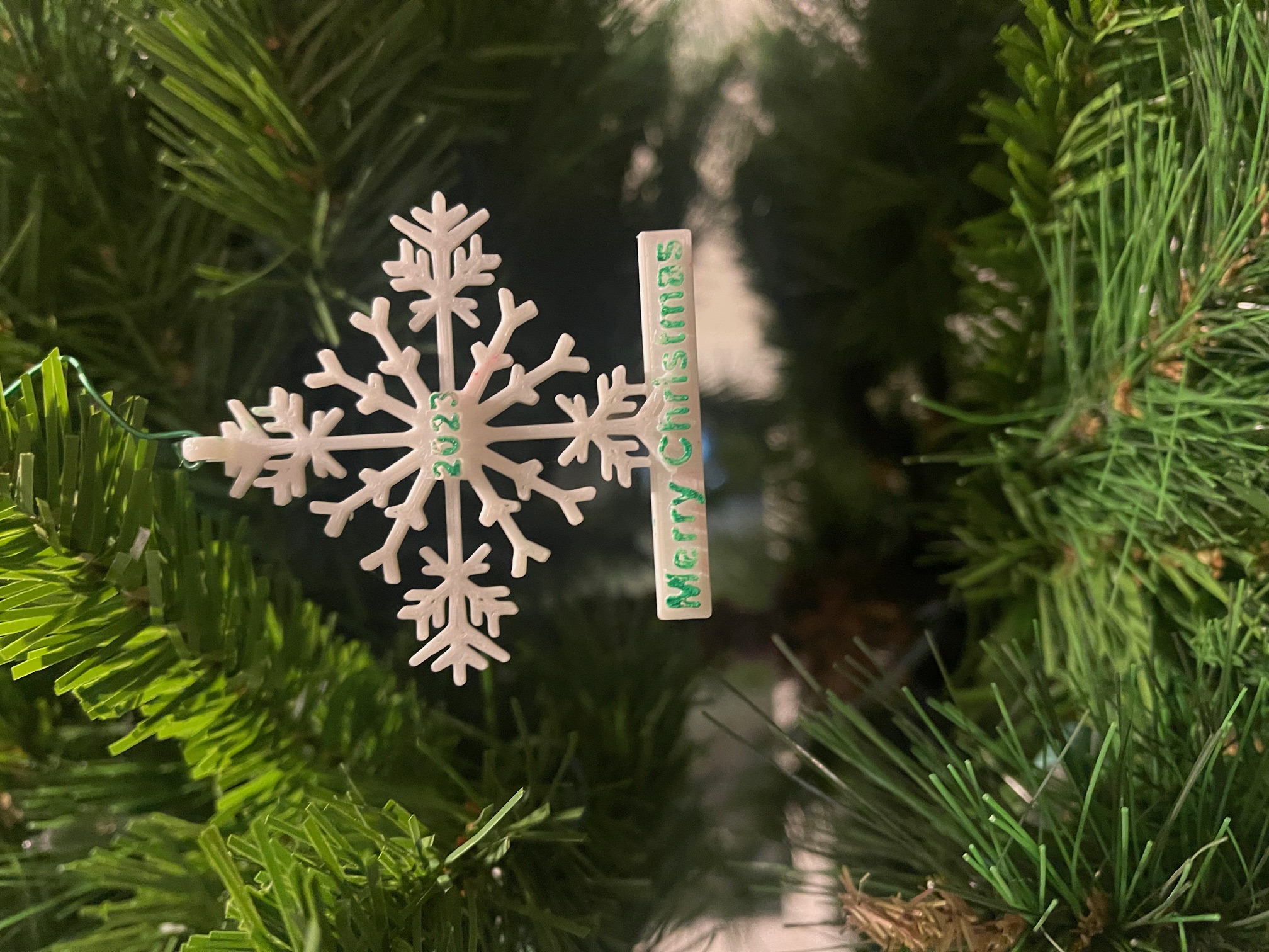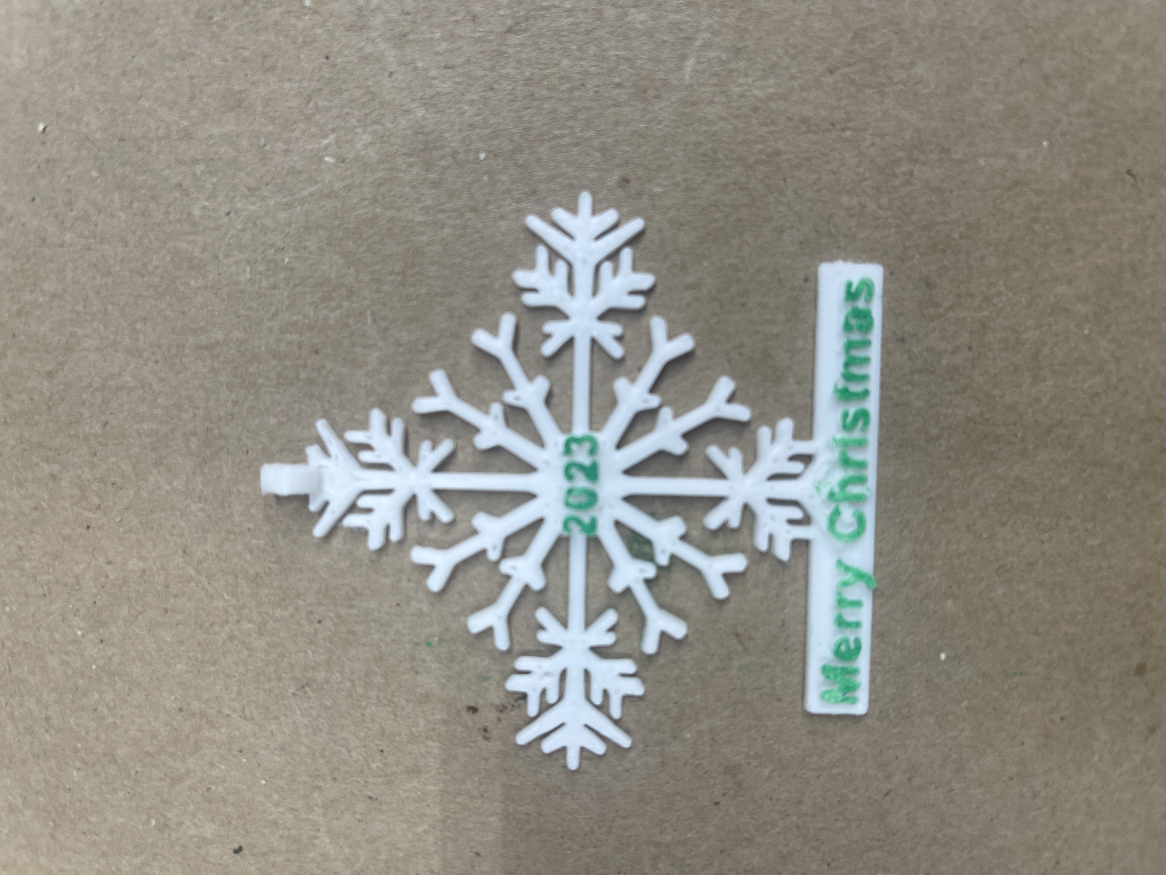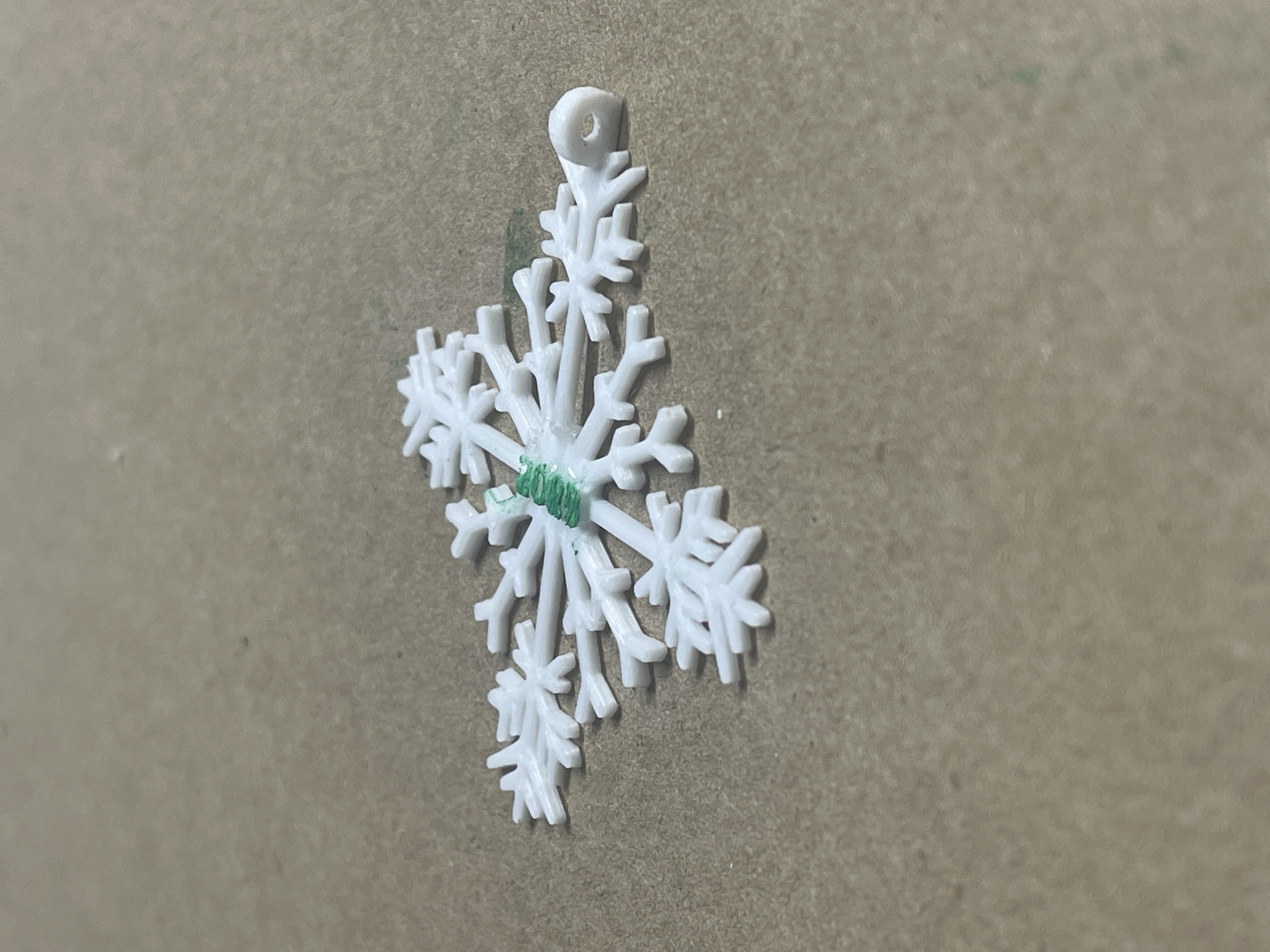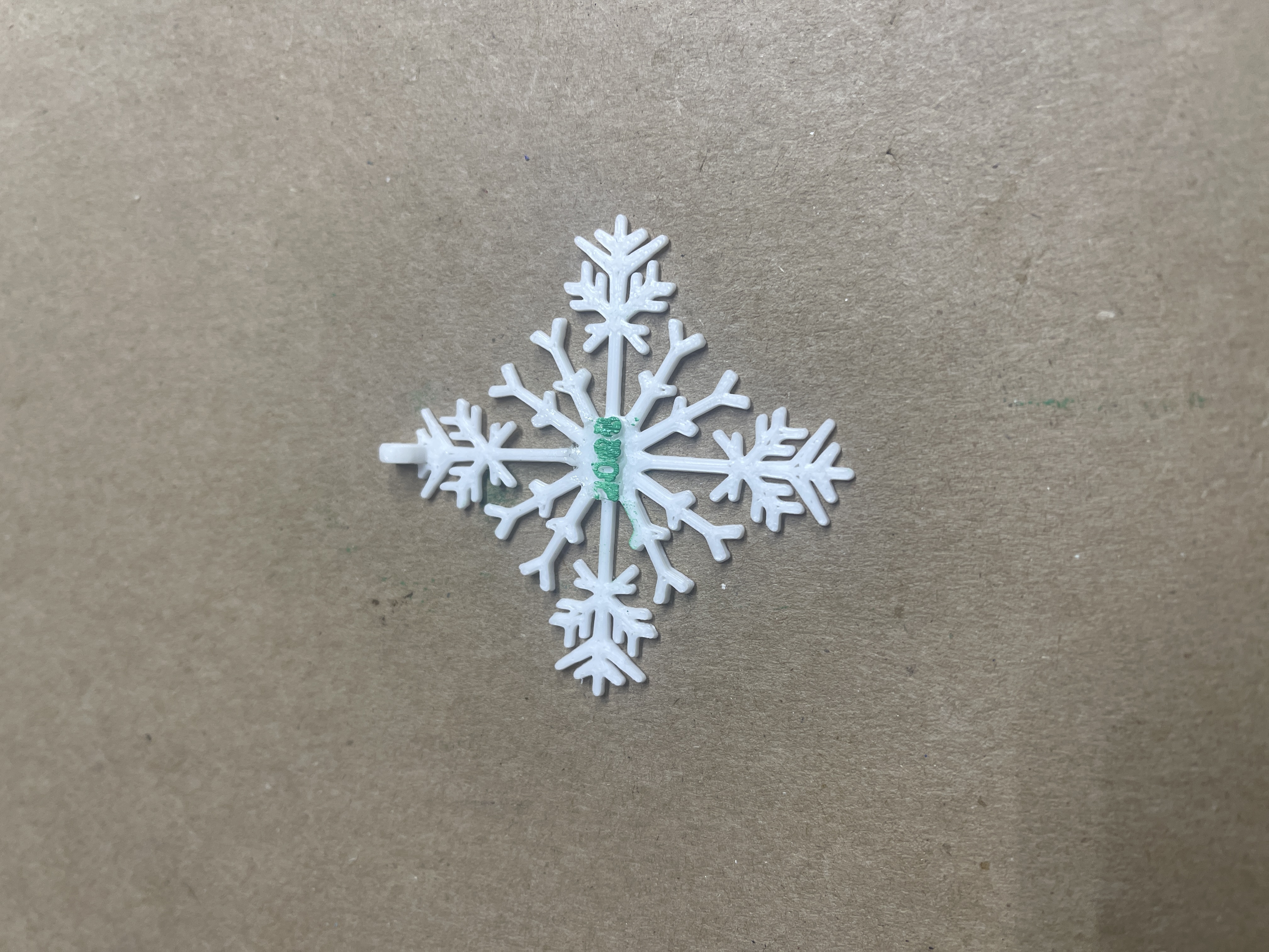Ở phía trên của bông tuyết có chỗ để luồn dây đeo cổ. Hoặc bạn có thể mua ghim cài từ Amazon để dán vào mặt sau và đeo như một chiếc ghim cài áo. Hoặc bạn có thể treo nó lên cây thông Noel. Có hai tùy chọn được cung cấp, có và không có dòng chữ “Merry Christmas”. Một chốt an toàn cho dây đeo được thiết kế với khớp ép, có thể tháo ra khi kéo mạnh. Nó được cung cấp trong một tệp riêng trên Printables.com. Tôi thấy việc dùng cọ mút để sơn dễ hơn nhiều so với cọ nhỏ. Tôi đã sử dụng sơn gốc dầu, loại này khô rất lâu.