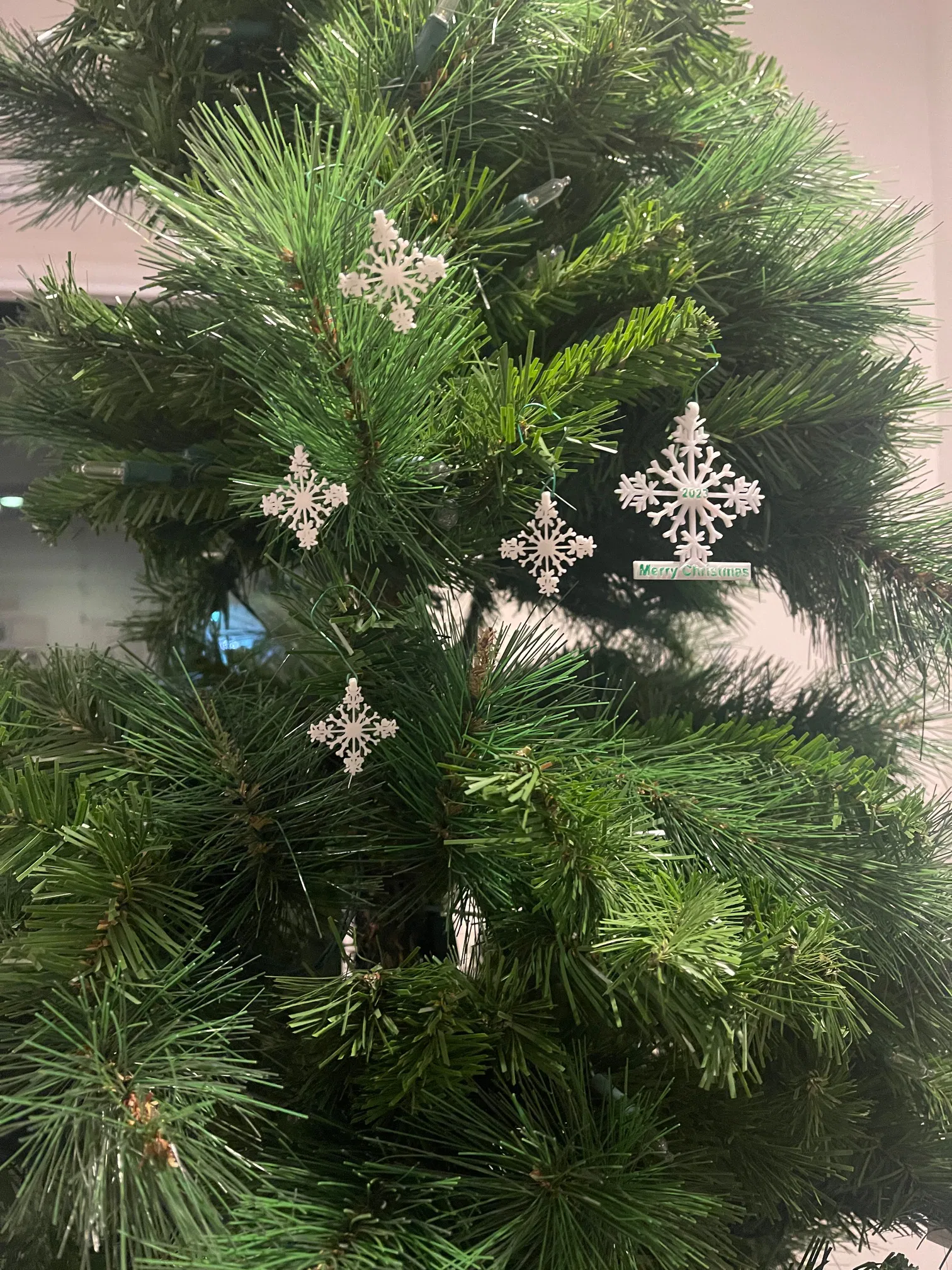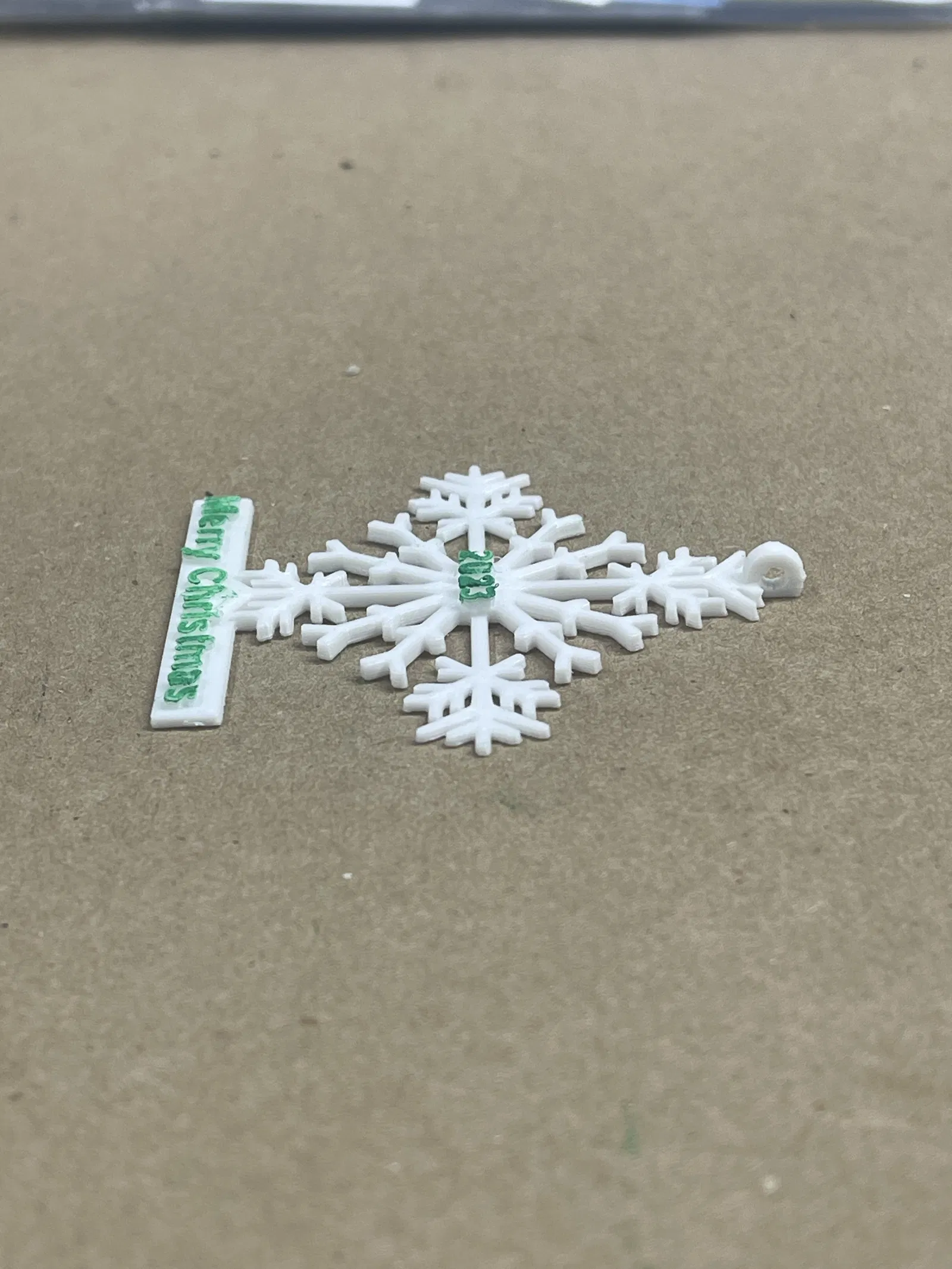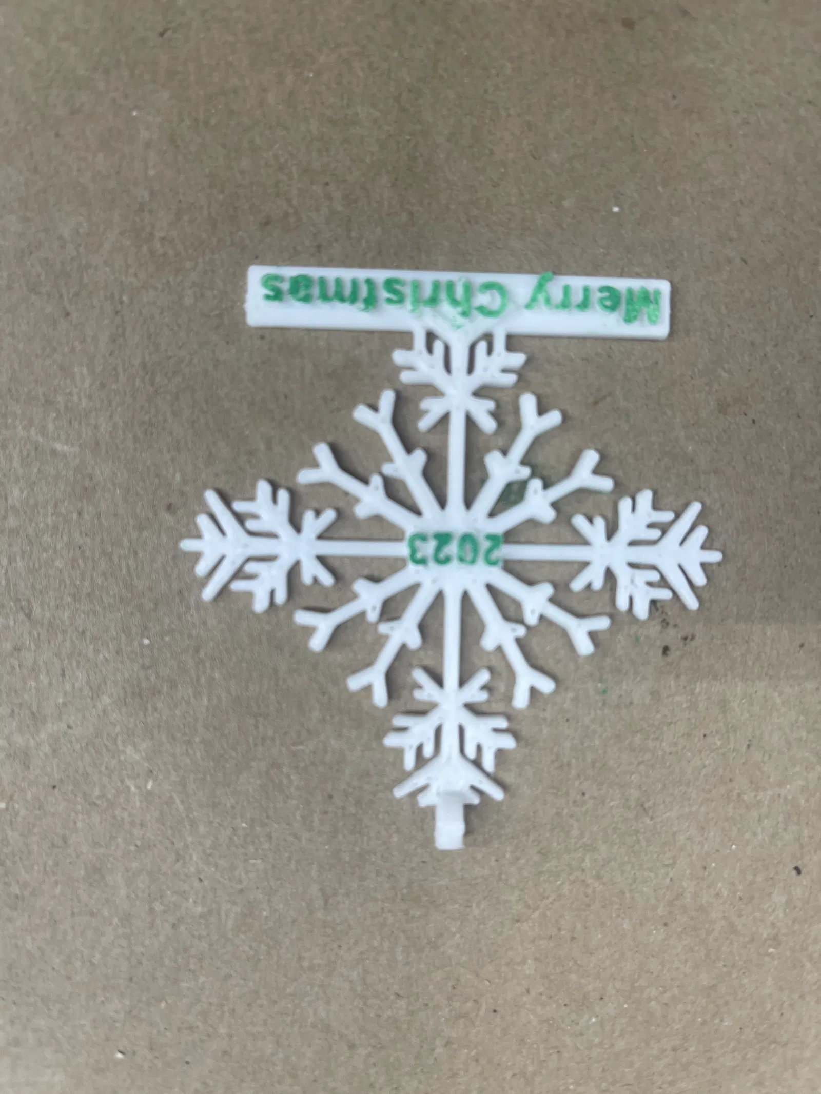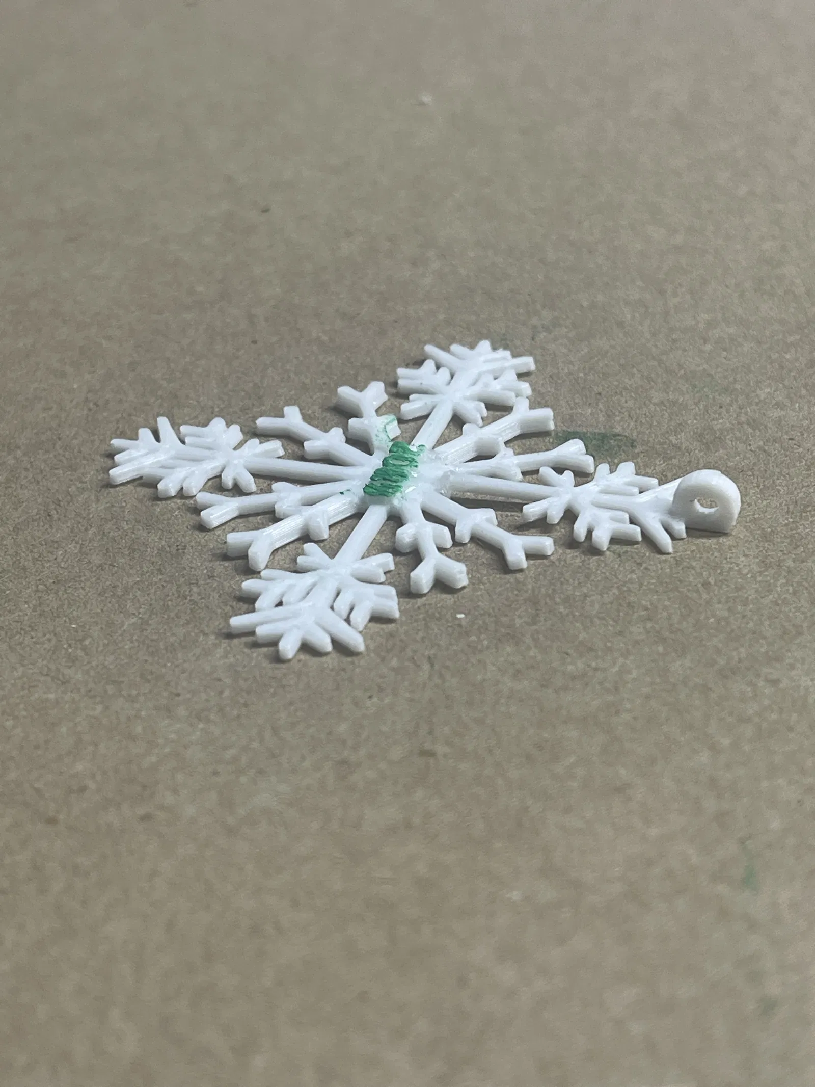 Ở phía trên của bông tuyết có chỗ để luồn dây đeo cổ. Hoặc bạn có thể mua ghim cài từ Amazon để dán vào mặt sau và đeo như một chiếc ghim cài áo. Hoặc bạn có thể treo nó lên cây thông Noel. Có hai tùy chọn được cung cấp, có và không có dòng chữ “Merry Christmas”. Một chốt an toàn cho dây đeo được thiết kế với khớp ép, có thể tháo ra khi kéo mạnh. Nó được cung cấp trong một tệp riêng trên Printables.com. Tôi thấy việc dùng cọ mút để sơn dễ hơn nhiều so với cọ nhỏ. Tôi đã sử dụng sơn gốc dầu, loại này khô rất lâu.