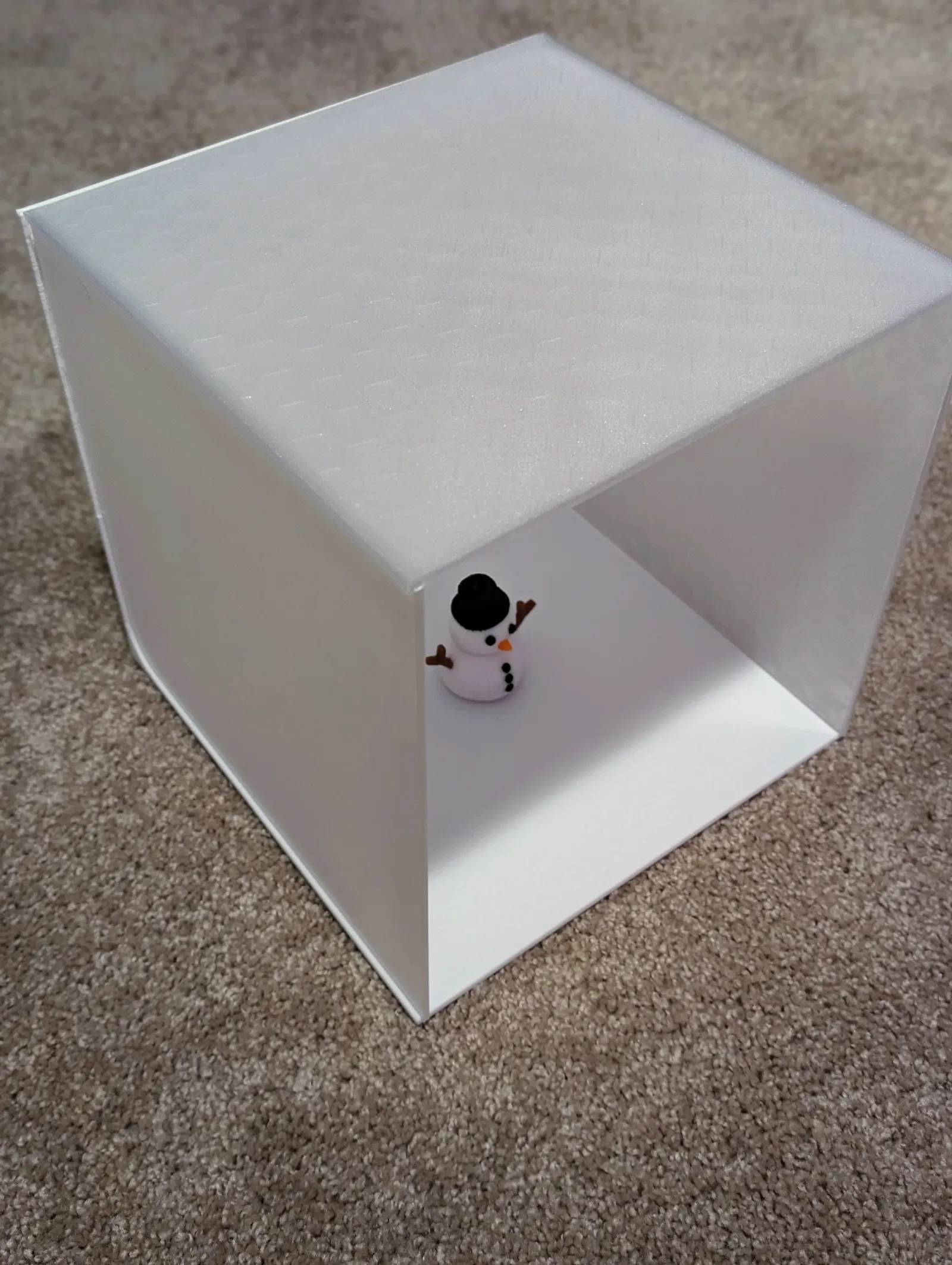 Phần đế có thể in màu đen hoặc trắng, và có thể dễ dàng sử dụng với bất kỳ phông nền vải nào. Các tấm bên và tấm trên là tùy chọn, và có thể in bằng nhiều màu sắc và vật liệu khác nhau để phù hợp với nhu cầu sáng tạo của bạn. Ví dụ: Cần ánh sáng dịu hơn? In các tấm bên và tấm trên bằng vật liệu trong suốt và chiếu đèn hoặc đèn flash xuyên qua nó. Cần ánh sáng lấp đầy nhất quán hơn? In một mặt bằng màu trắng và phản chiếu ánh sáng từ bức tường đối diện. Cần kiểm soát bóng đổ hơn? In một mặt bằng màu đen và để nó hấp thụ ánh sáng dư thừa. Cần ánh sáng lấp đầy màu ấm? In một mặt bằng màu vàng hoặc vàng kim.