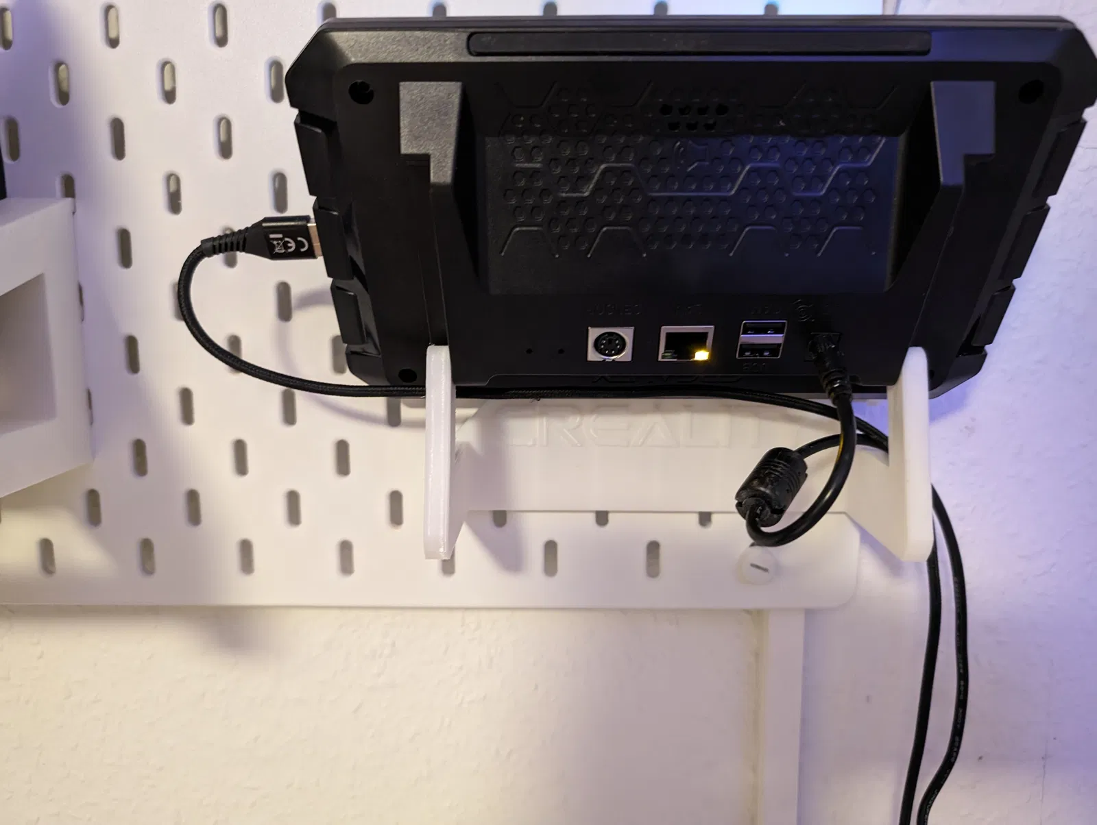 Giá đỡ Sonic Pad chắc chắn, chống xoắn, có thể xoay, tích hợp logo CREALITY cho bảng Skadis của Ikea. Dễ dàng kết nối dây cáp, được thiết kế để in với 5% Infill, 2 Tường và có Support.