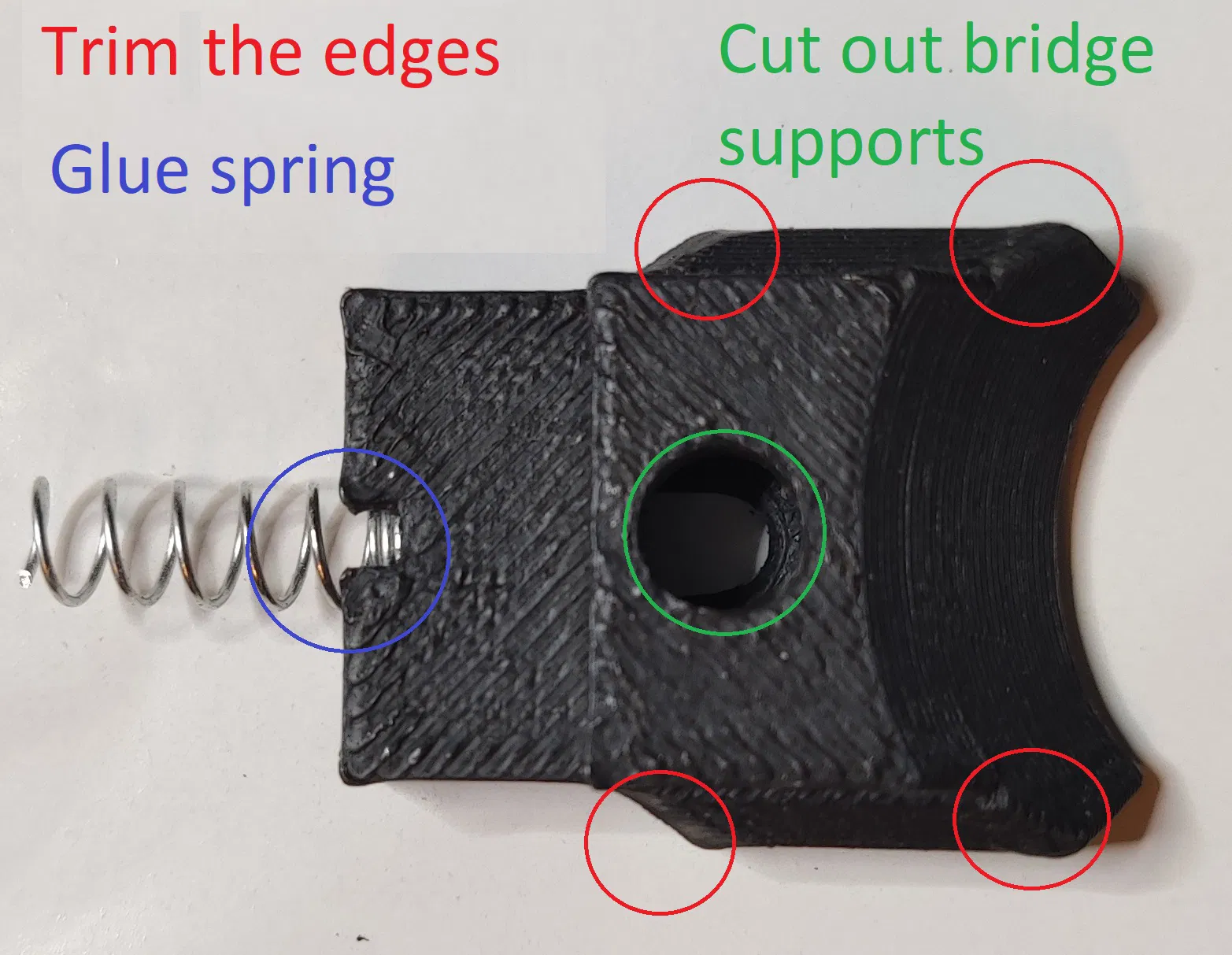 - Để dễ lắp hơn, có thể keo lò xo vô cái lẫy.