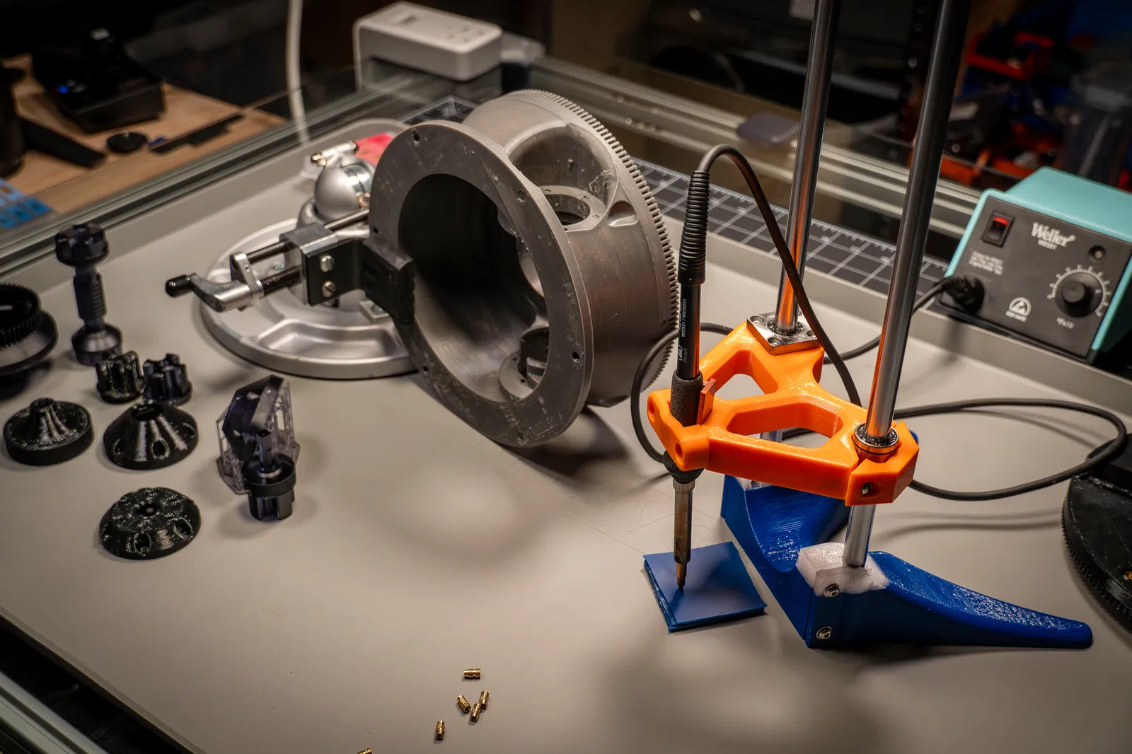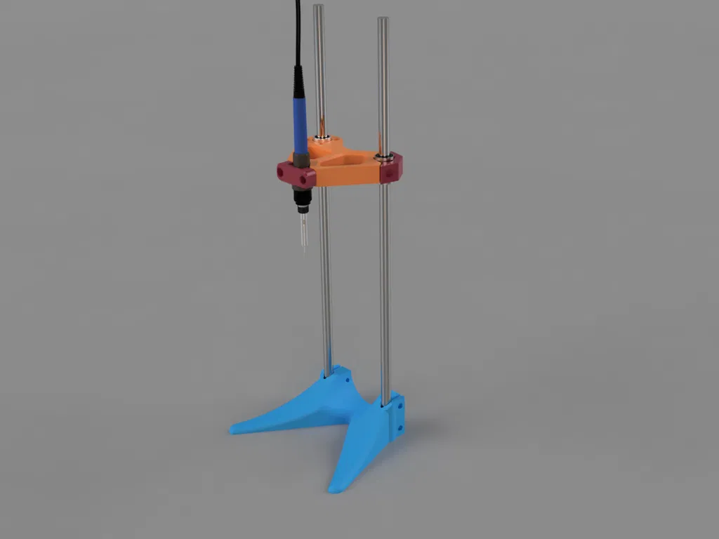 Một đế và giá đỡ giúp định hướng mỏ hàn khi gắn nhiệt. Đế giữ các thanh tuyến tính bằng kẹp chia, còn giá đỡ kẹp mỏ hàn. Đã được thử nghiệm và hoạt động tốt!