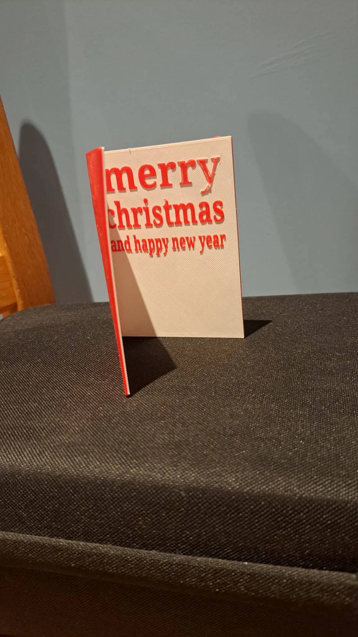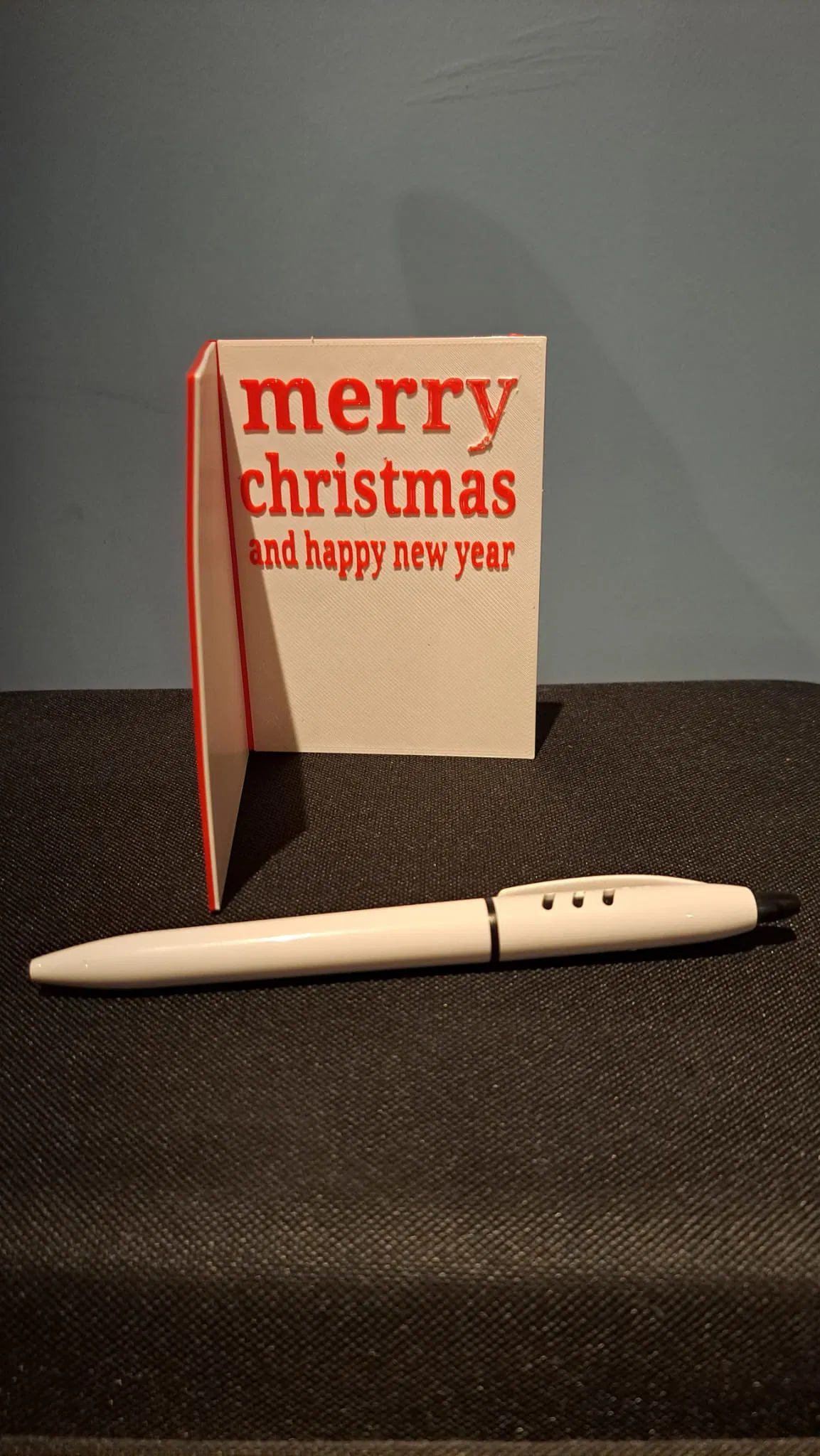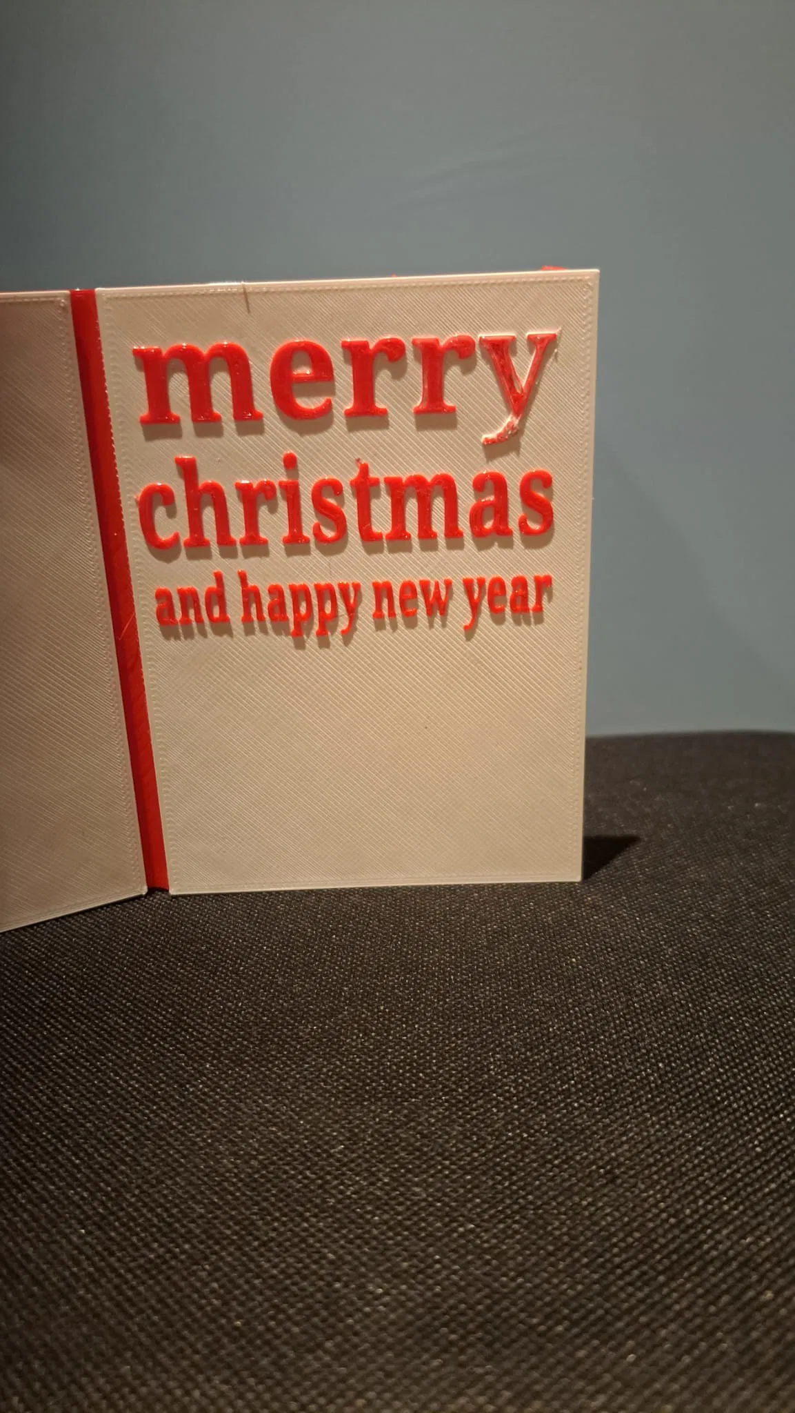 Bạn lười viết thiệp Giáng Sinh? Đừng lo, mẫu thiệp Giáng Sinh in 3D này là dành cho bạn! Dễ dàng tạo ra những tấm thiệp độc đáo và đầy ý nghĩa để gửi tặng người thân yêu. In liền (print in place) giúp tiết kiệm thời gian và công sức. Chúc bạn Giáng sinh an lành!
