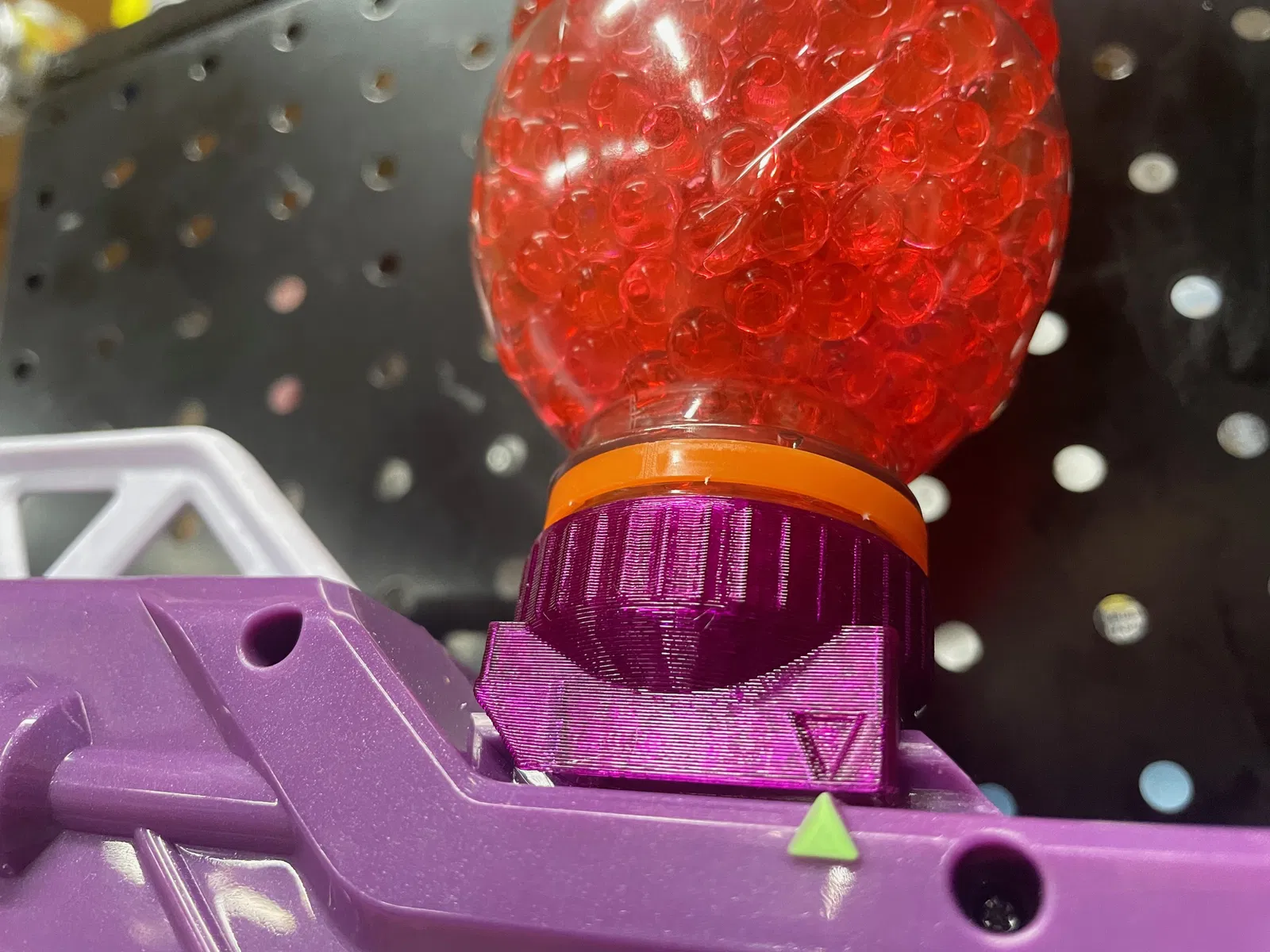 Cổ sạc thay thế cho máy Gel Blaster Surge và Starfire, vặn vừa chai Gatorade. Chứa nhiều gel hơn, nạp đạn tốt hơn, hạn chế kẹt đạn. In bằng PETG, dễ lắp đặt và tháo rời.