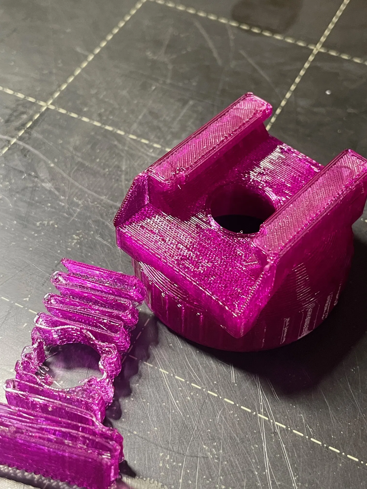 In bằng PETG, có support sơn ở dưới phần ray. Không cần support nào khác.