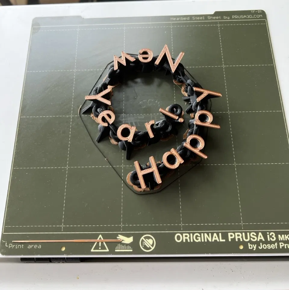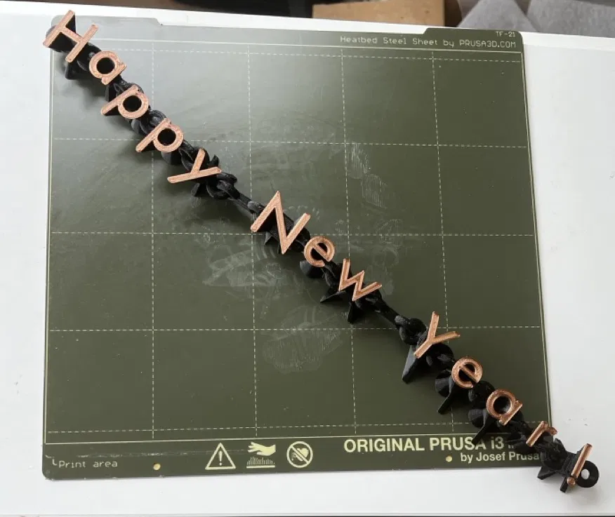 Mình xài PLA, màu đen cho phần thân dây chuyền, và màu đồng cho phần viền.
