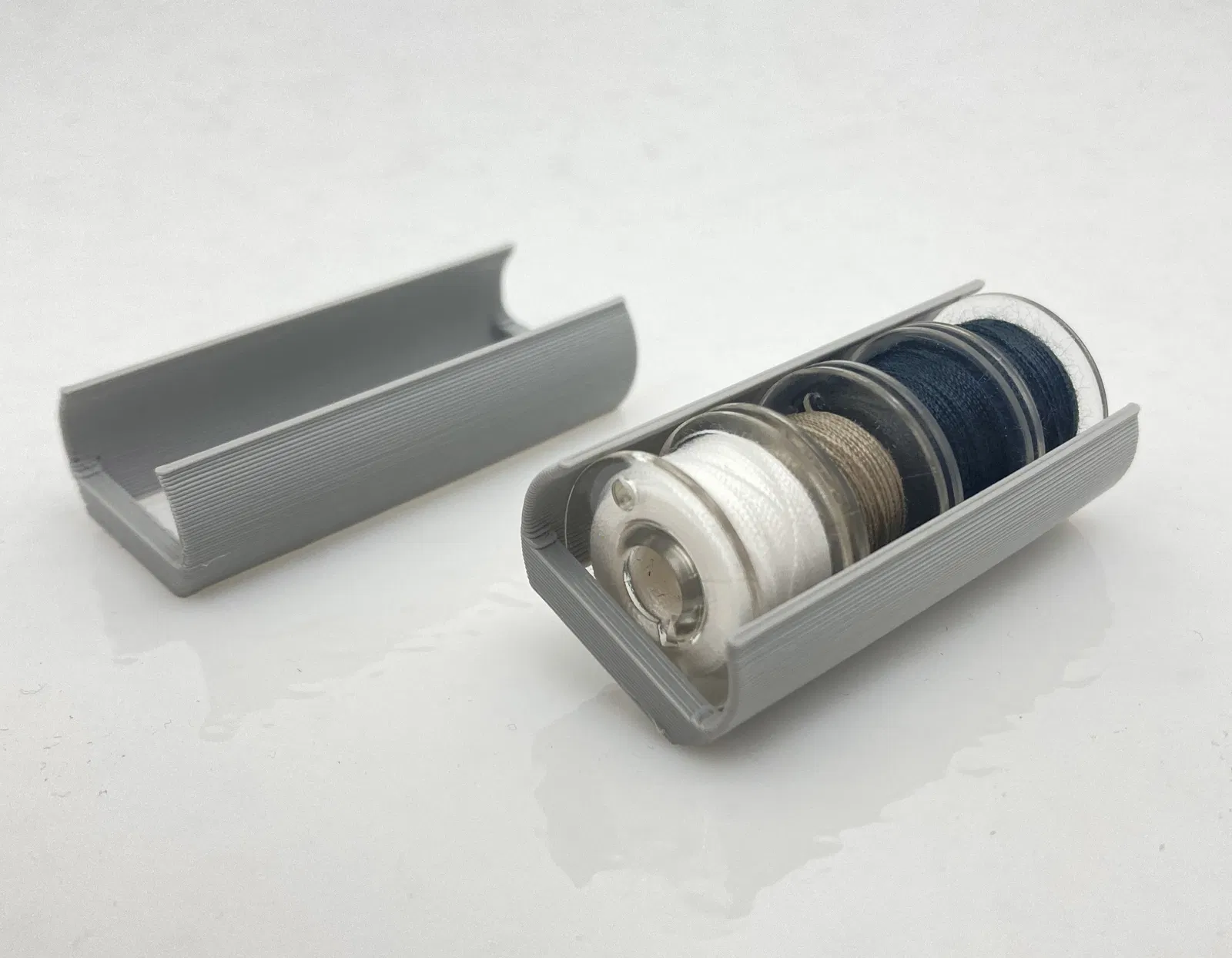 Mấy cái suốt chỉ bị bung ra trong hộp đồ của bạn hả? Dùng cái hộp đơn giản này nè. Chứa 4 cái suốt chắc chắn. Cứ việc gắn vô, rút ra thôi. In thêm mấy cái nữa nếu bạn có nhiều suốt.
