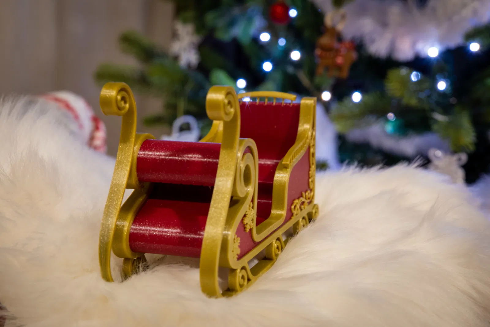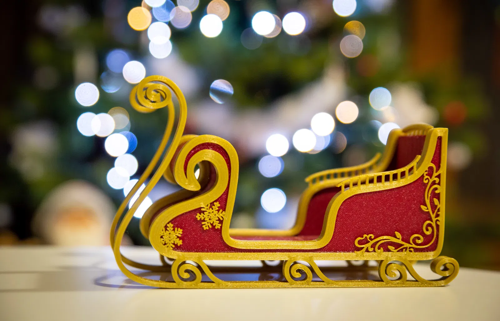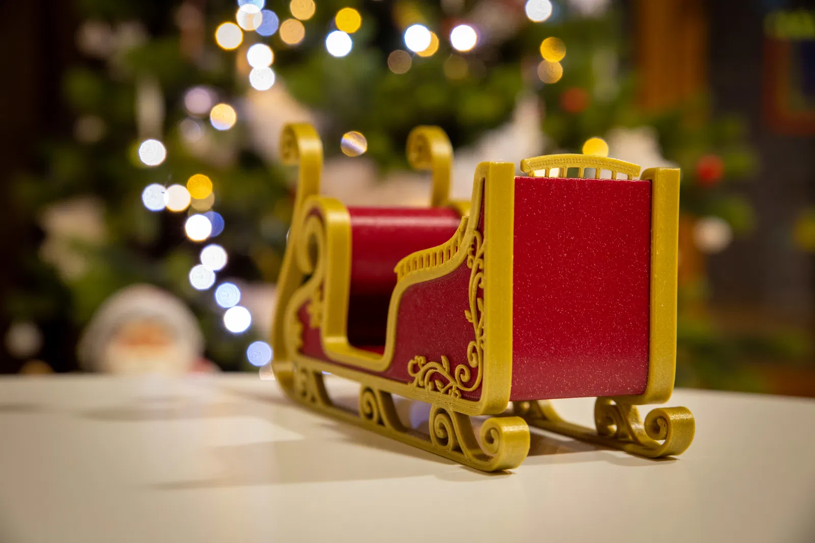 Xe trượt tuyết Santa cực kỳ thanh lịch, dễ in mà không cần đế đỡ hay lớp hỗ trợ. Với dung sai 0.5mm, mọi thứ sẽ khớp hoàn hảo. In bằng PLA, độ phân giải 0.2mm, mật độ điền 10%. Khung xe mỏng manh, nhớ in chậm 4 lớp đầu. Các chi tiết trang trí cũng mỏng, nên để nguội bàn in trước khi tháo.