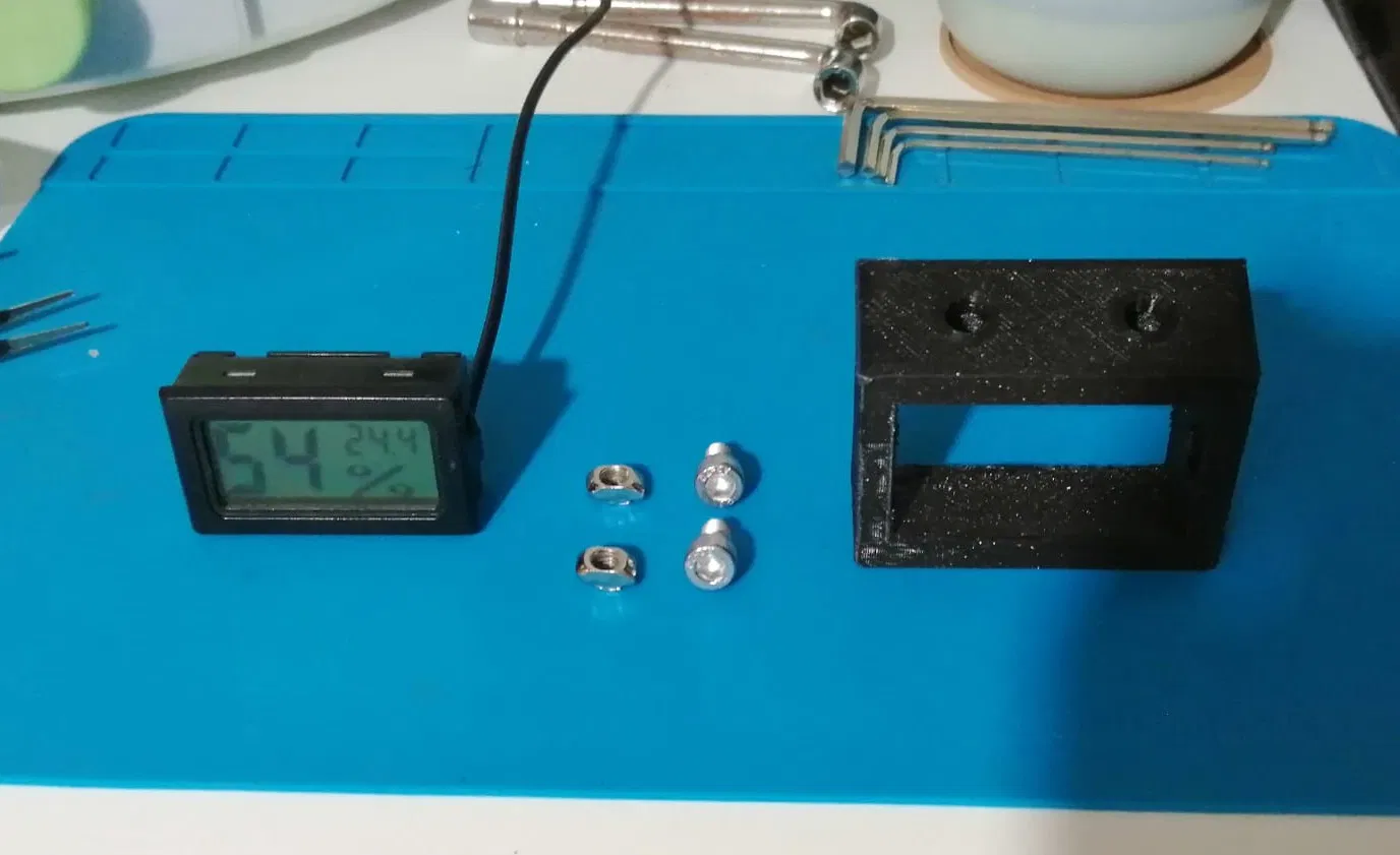 Phiên bản REMIX của giá đỡ ẩm kế, sử dụng lỗ vít M5 thay vì M4 như bản gốc. Thiết kế này cho phép gắn đầu hoặc đáy thanh nhôm định hình 2020 hoặc 2040, phù hợp cho các máy in 3D như Creality Ender 3, Ender 5. Cảm biến độ ẩm thường mua từ AliExpress/Alibaba.