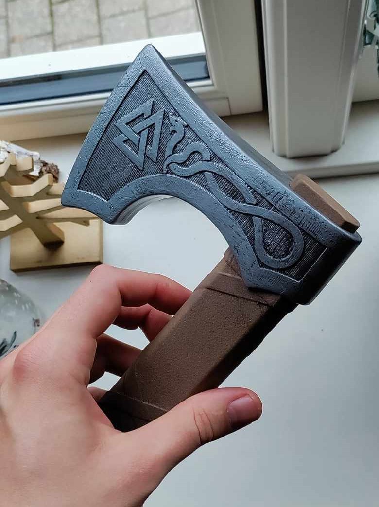 Tui đã làm một cái đầu rìu thay thế cho giá đỡ xúc xắc D&D, lấy cảm hứng từ rìu Mammen, Đan Mạch. Mấy phần kim loại in PLA trắng rồi sơn, còn phần cán thì in PLA vân gỗ. File setup Prusaslicer kèm theo. Chúc bạn in vui vẻ!