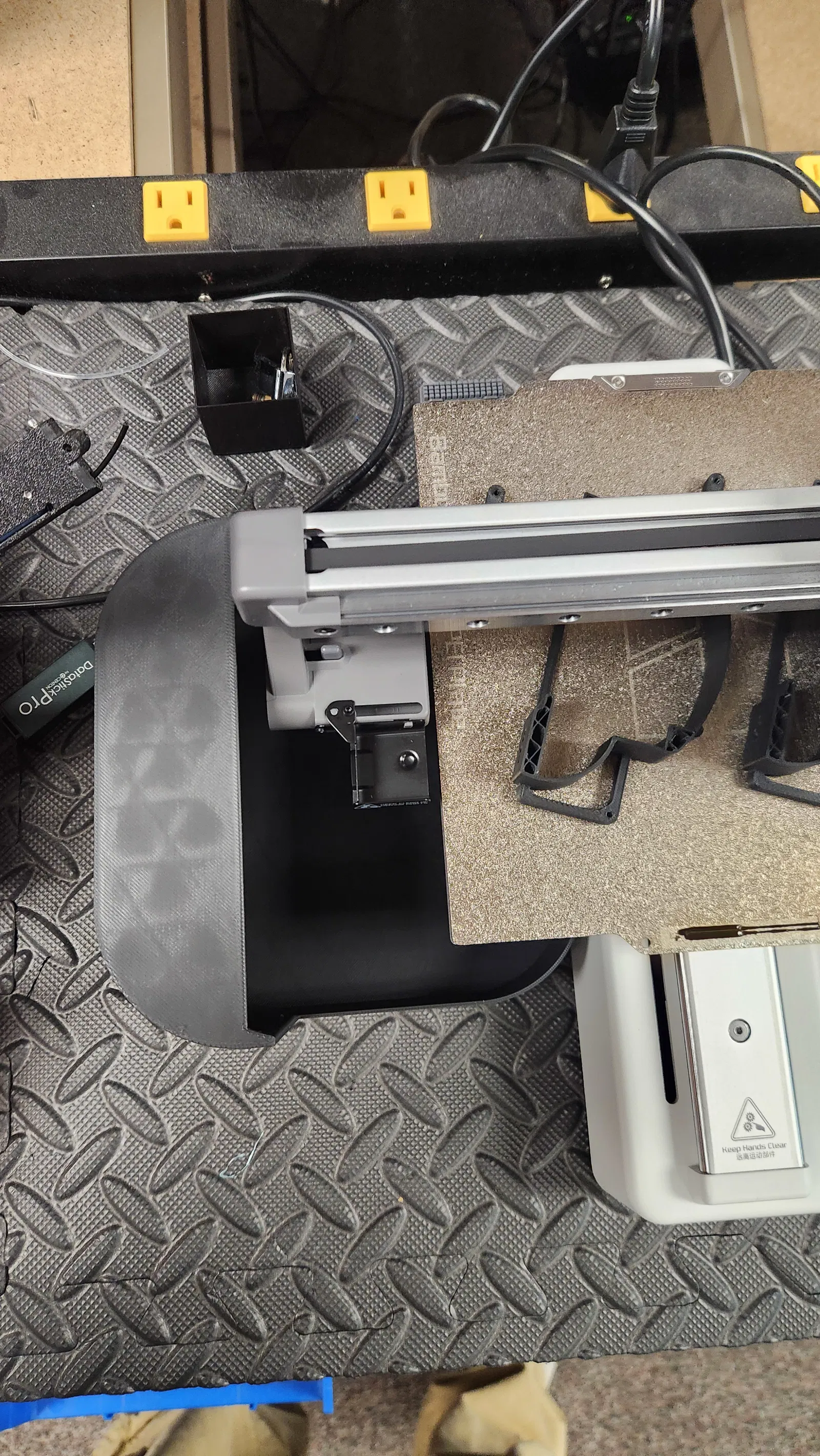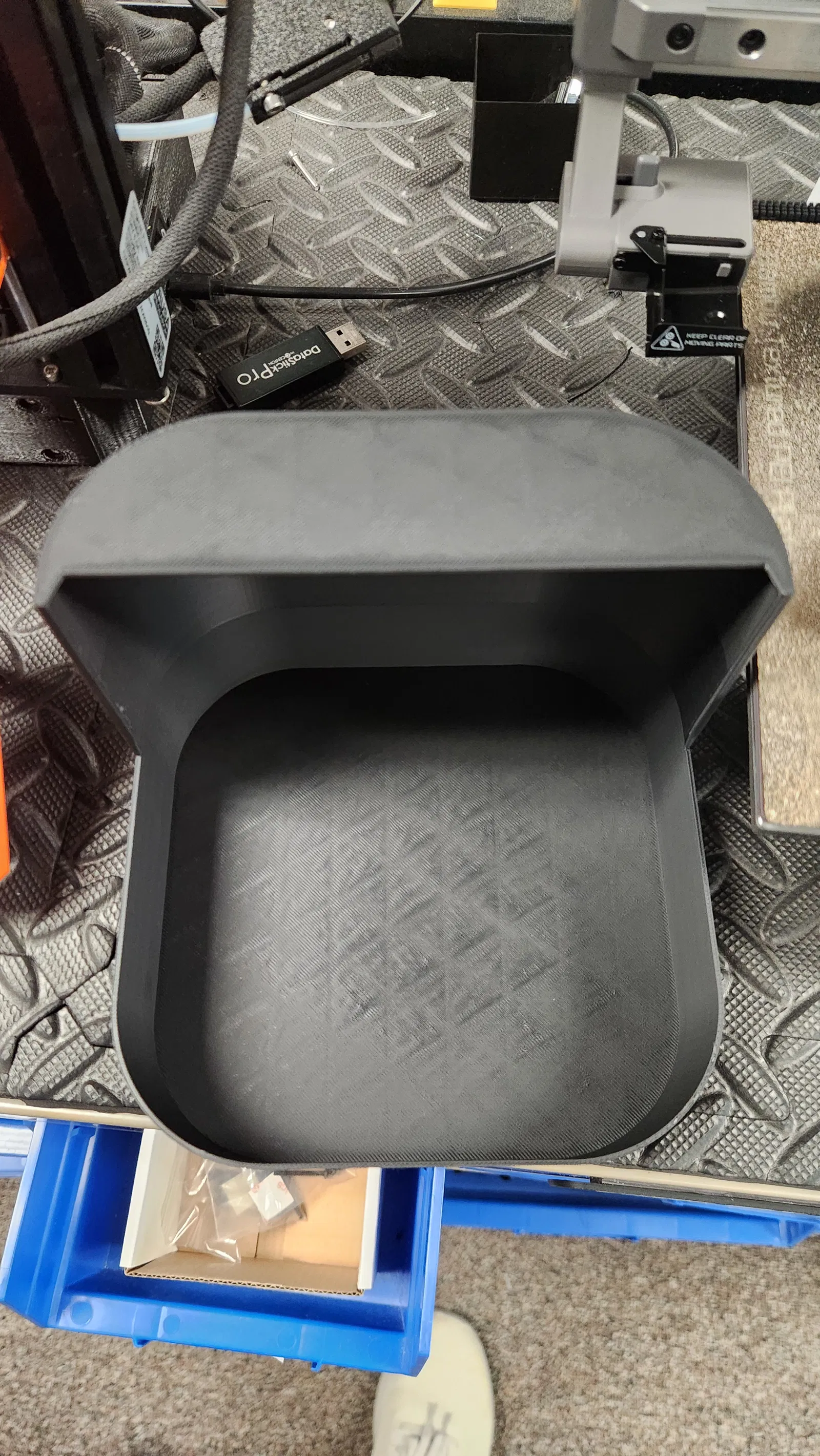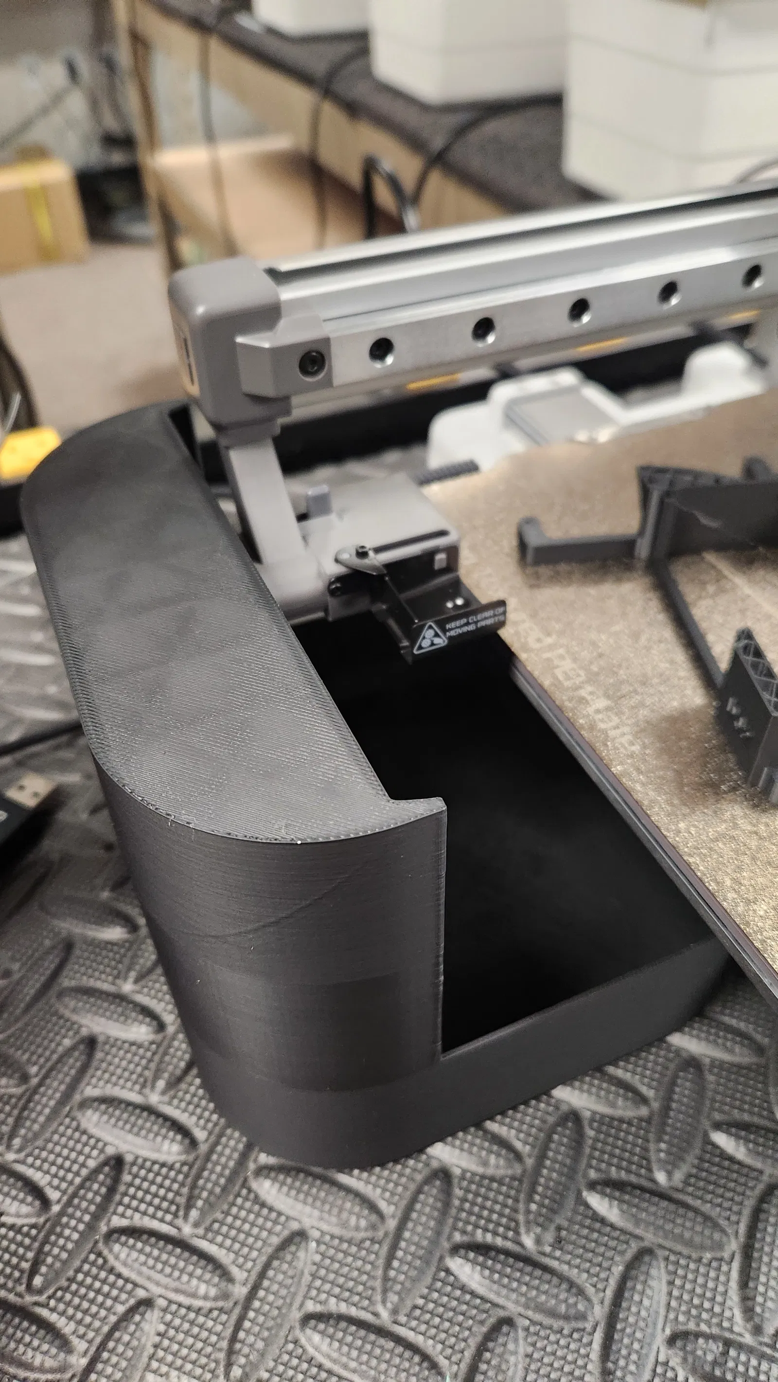 Chắn rác A1 Mini Bambu, nhanh gọn lẹ. Mấy vụ phun nhựa thì hay văng lung tung, nên cái này có thêm cái chặn phía sau thiệt bự, tường dày 1.35mm cho in ổn định.