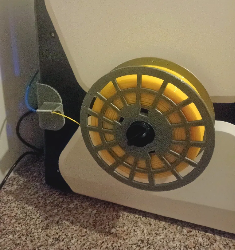 Để bổ sung cho mẫu https://www.f3d.vn/3d-model/14490-gia-do-cuon-ben-cho-may-in-3d-qidi-x-plus3 , cái mà mình tìm thấy trên Wiki của Qidi dành cho bên trái, để gắn nó vào bên phải máy in, mình cần chặn cái ống PTFE lại. Cái bộ phận này rất hiệu quả cho cuộn filament 1kg đầy hoặc gần hết.