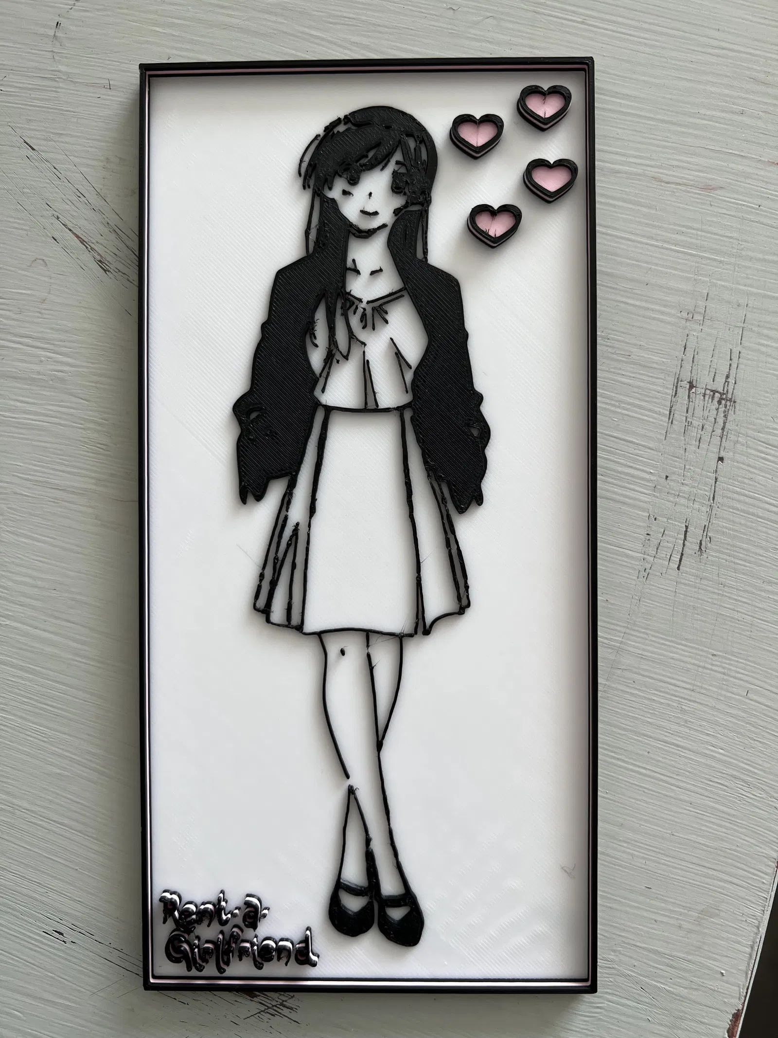 Làm cái này tặng bạn, mà cũng muốn khoe lên luôn! Đây là một bức tranh 2D vẽ Mizuhara trong bộ anime Rent-A-Girlfriend, một trong những bộ anime slice-of-life/hài lãng mạn yêu thích của mình. Mọi người xem chơi nha! Mình đã làm với vài lần đổi màu (xem hình) nhưng thực ra chỉ cần 1 lần đổi là đủ rồi. Mình làm tới 3 lần đổi màu để có thể tô hồng trái tim.