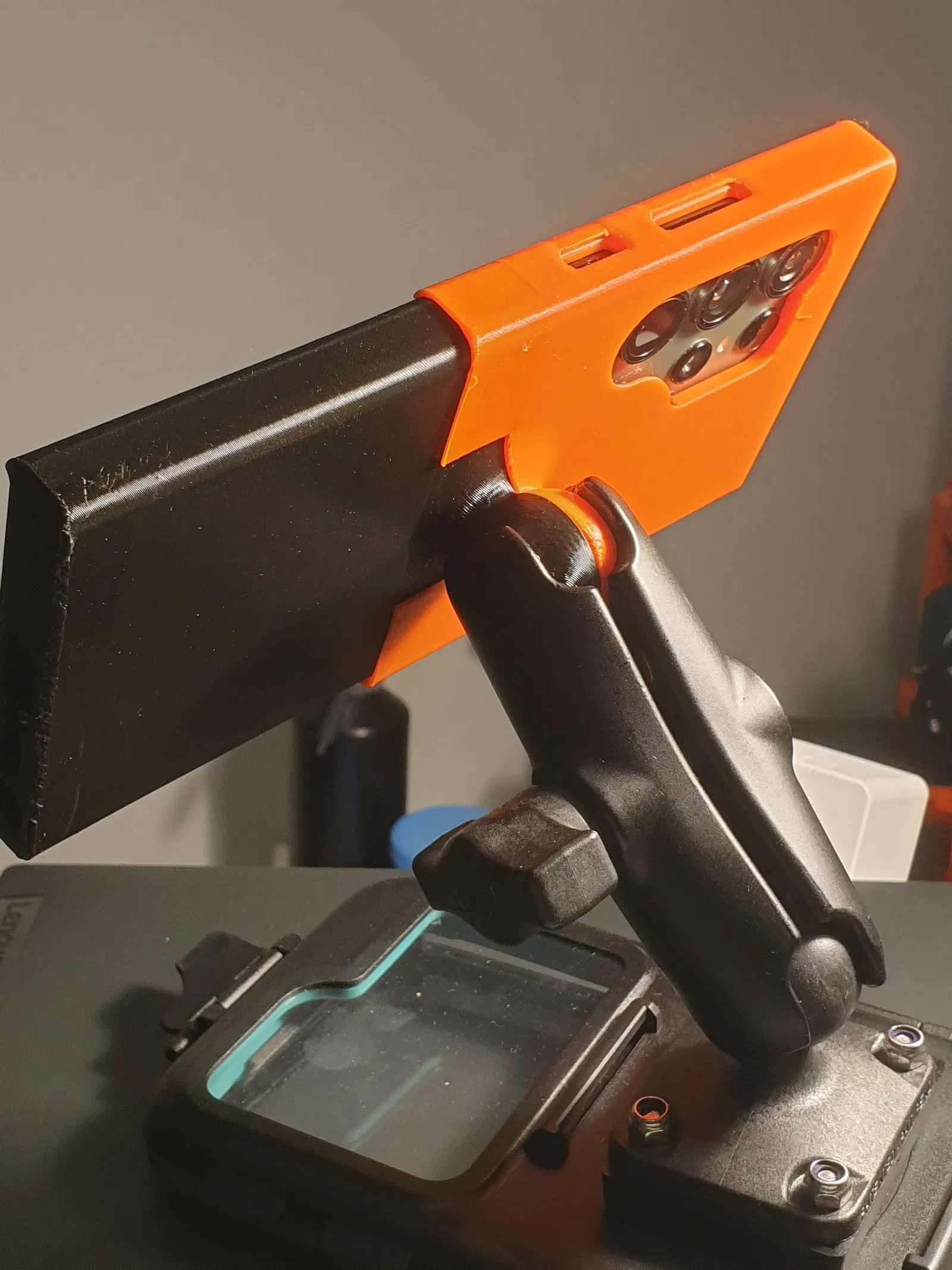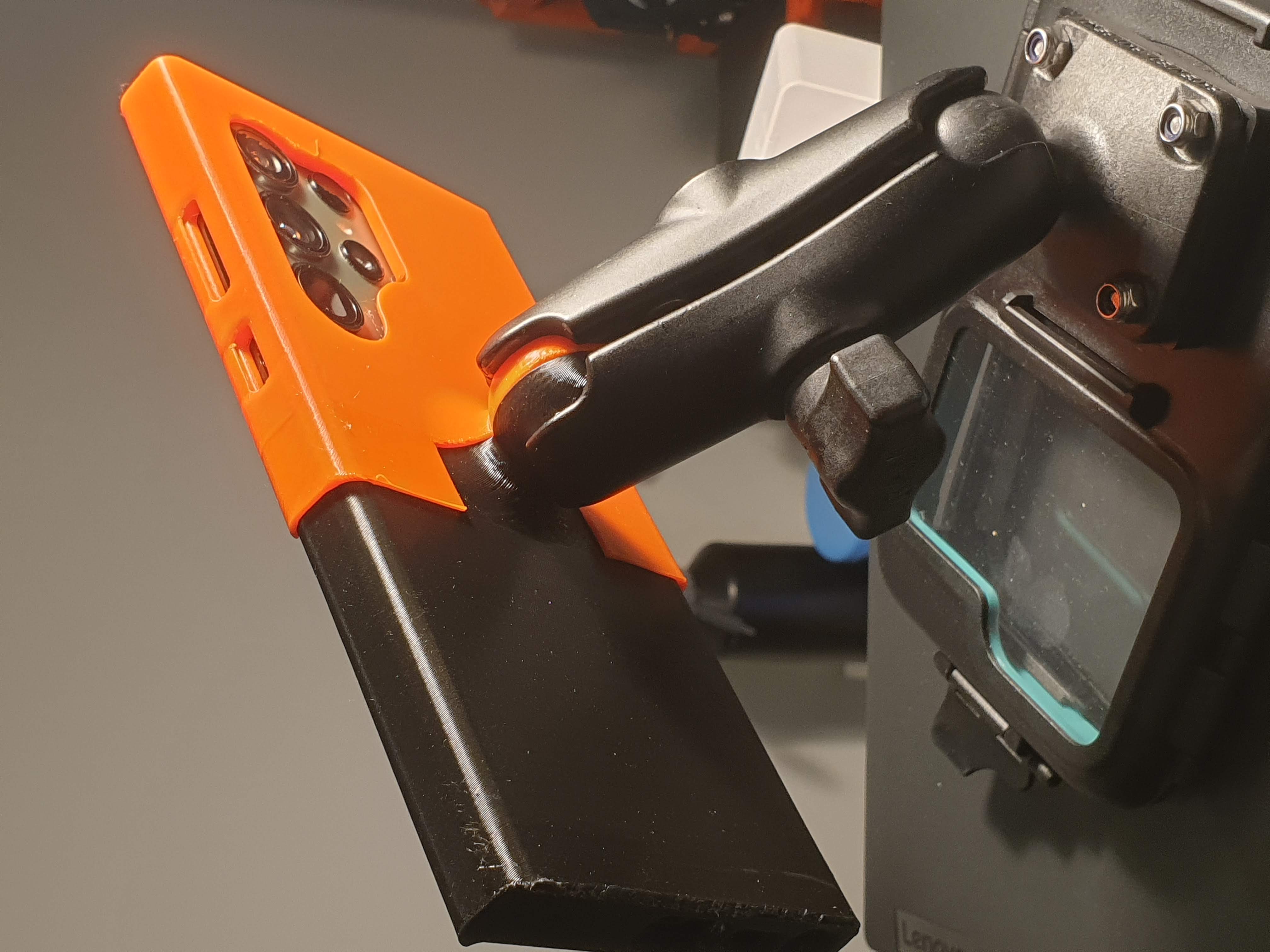 Tui tự làm cái ốp lưng Samsung Galaxy S23 Ultra, có thể gắn vô đế RAM mount xịn sò. Phần đế bi 1 inch, ốp chia 2 mảnh gắn tháo lẹ. Nút nguồn, âm lượng xài ok. Thích hợp cho xe máy, xe địa hình.