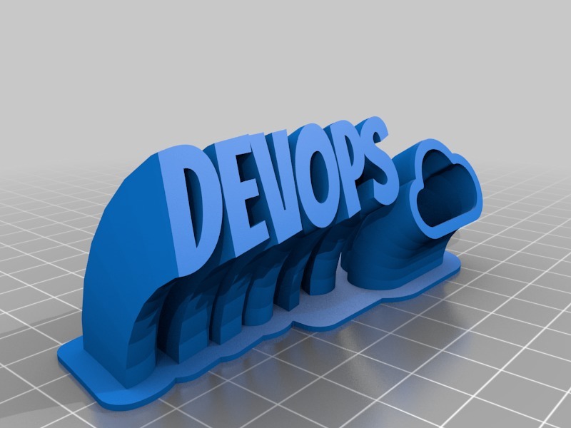 Phiên bản tùy chỉnh của bảng tên 2 dòng uốn lượn, có thể tùy chỉnh với tên 'DevOps' và biểu tượng đám mây. Tương thích với Customizer của Thingiverse, với các tùy chọn về kích thước chữ, font và hình dạng đế. Lý tưởng cho mục đích văn phòng hoặc cá nhân hóa.