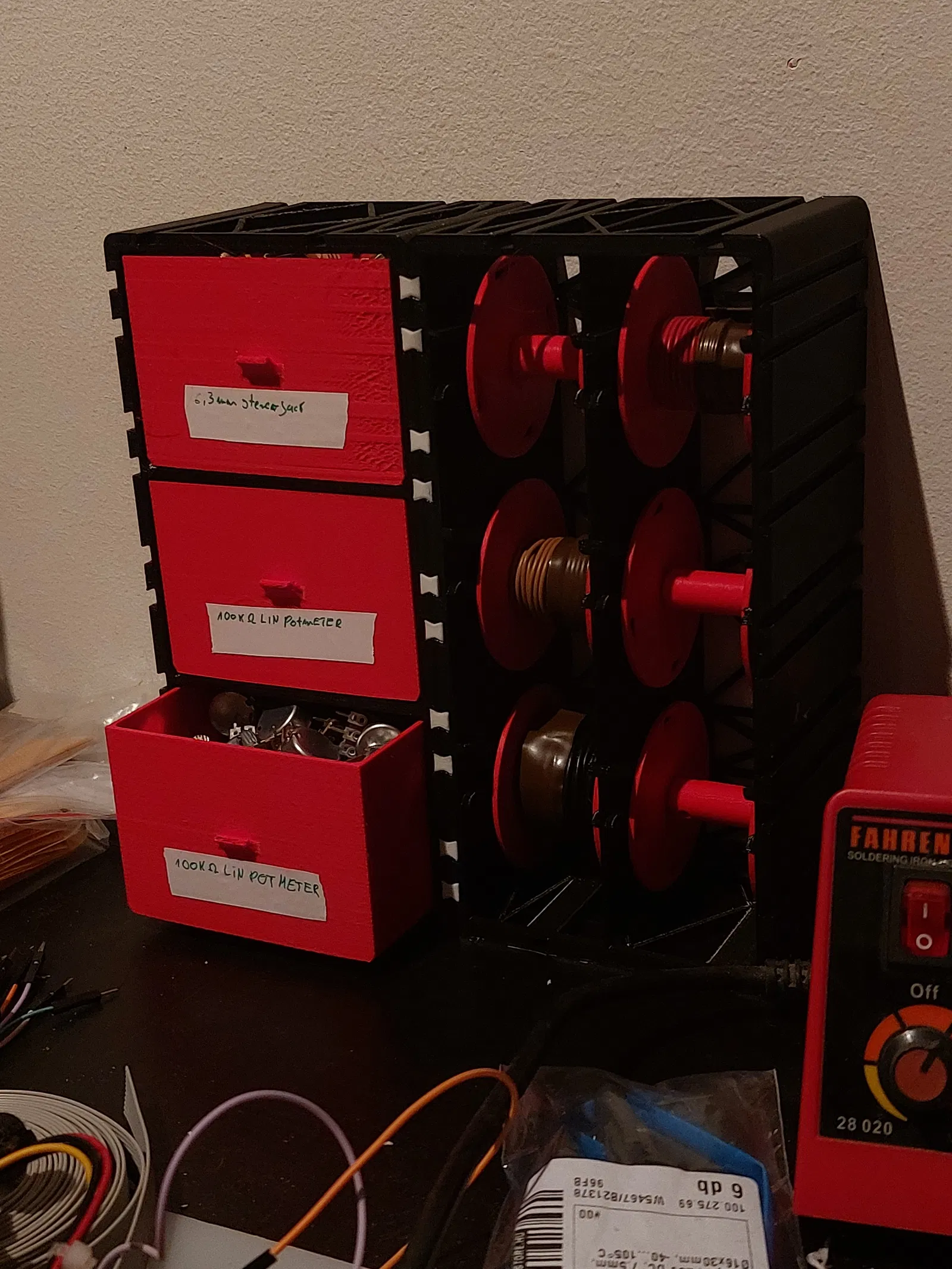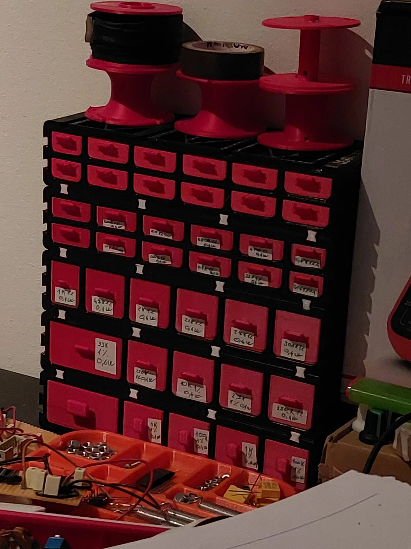 Ban đầu định làm cái gì đó để đựng mấy con điện trở của tui, mà thiết kế hoài thành ra bộ ngăn kéo luôn..