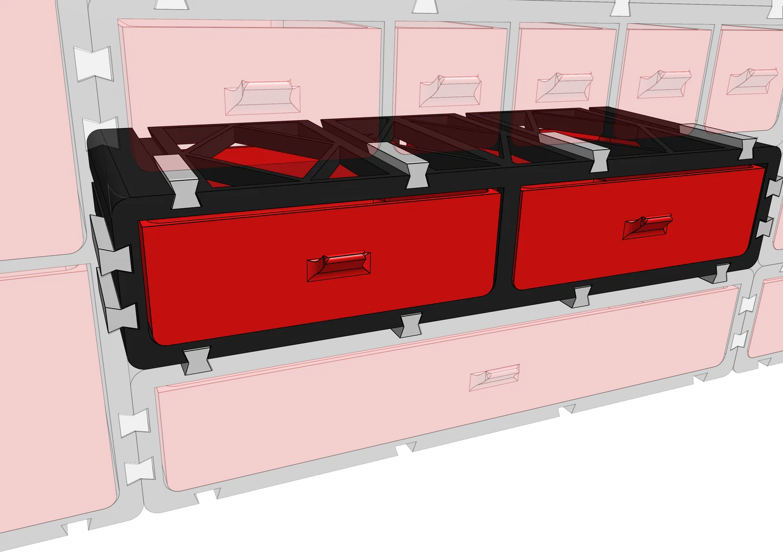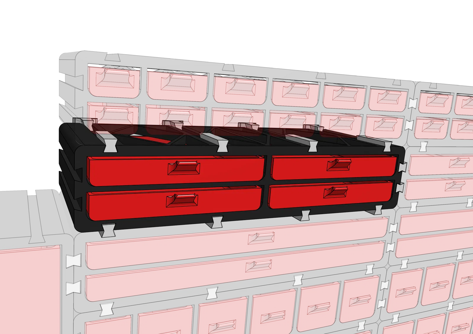 Một hệ thống ngăn kéo được thiết kế để giúp bạn sắp xếp bàn làm việc gọn gàng hơn. Có nhiều kích cỡ và loại khác nhau, có thể in ở chế độ vase mode hoặc bình thường. Đừng quên xem thêm phụ kiện pat treo tường và mở rộng gridfinity nhé!