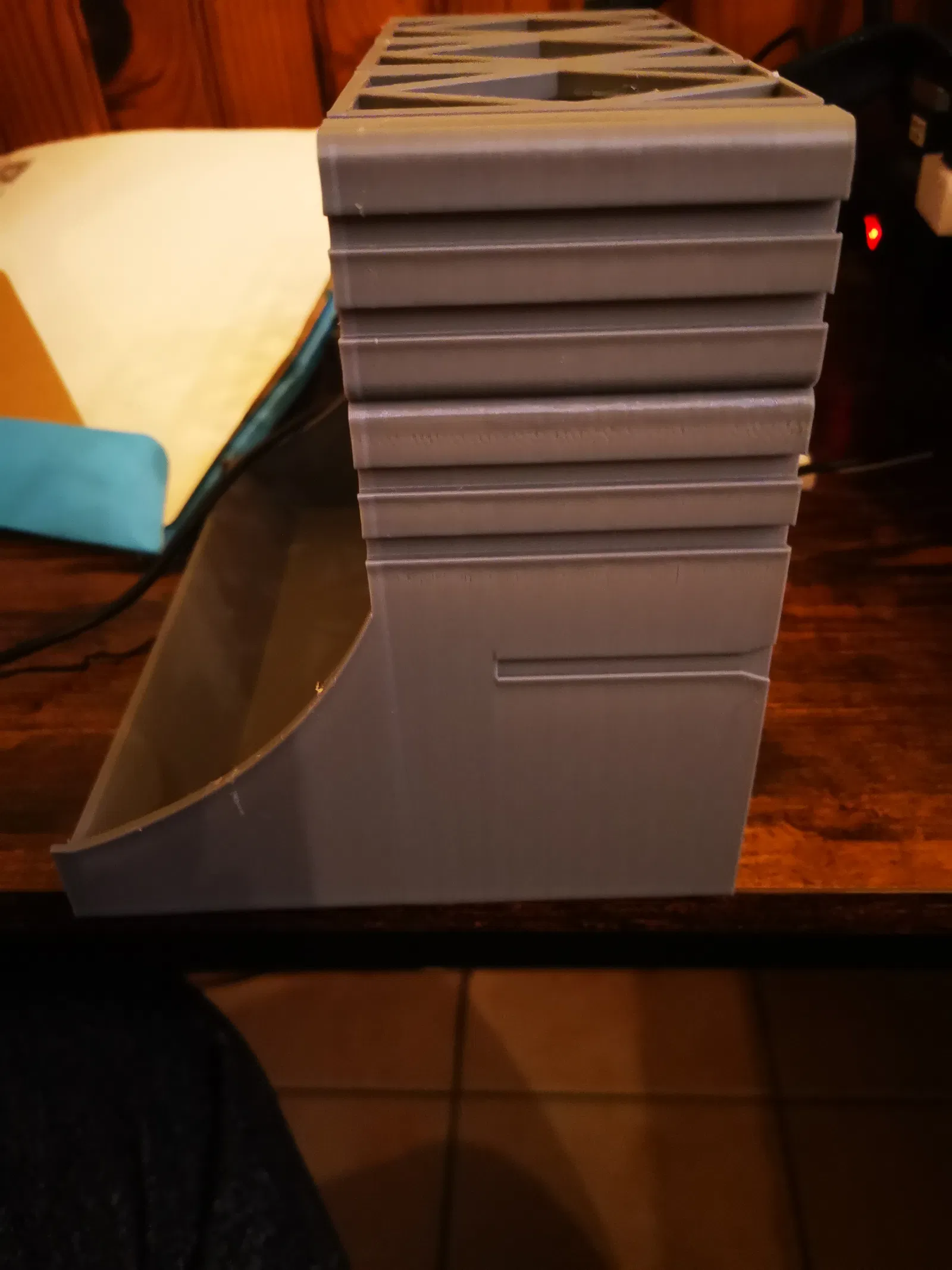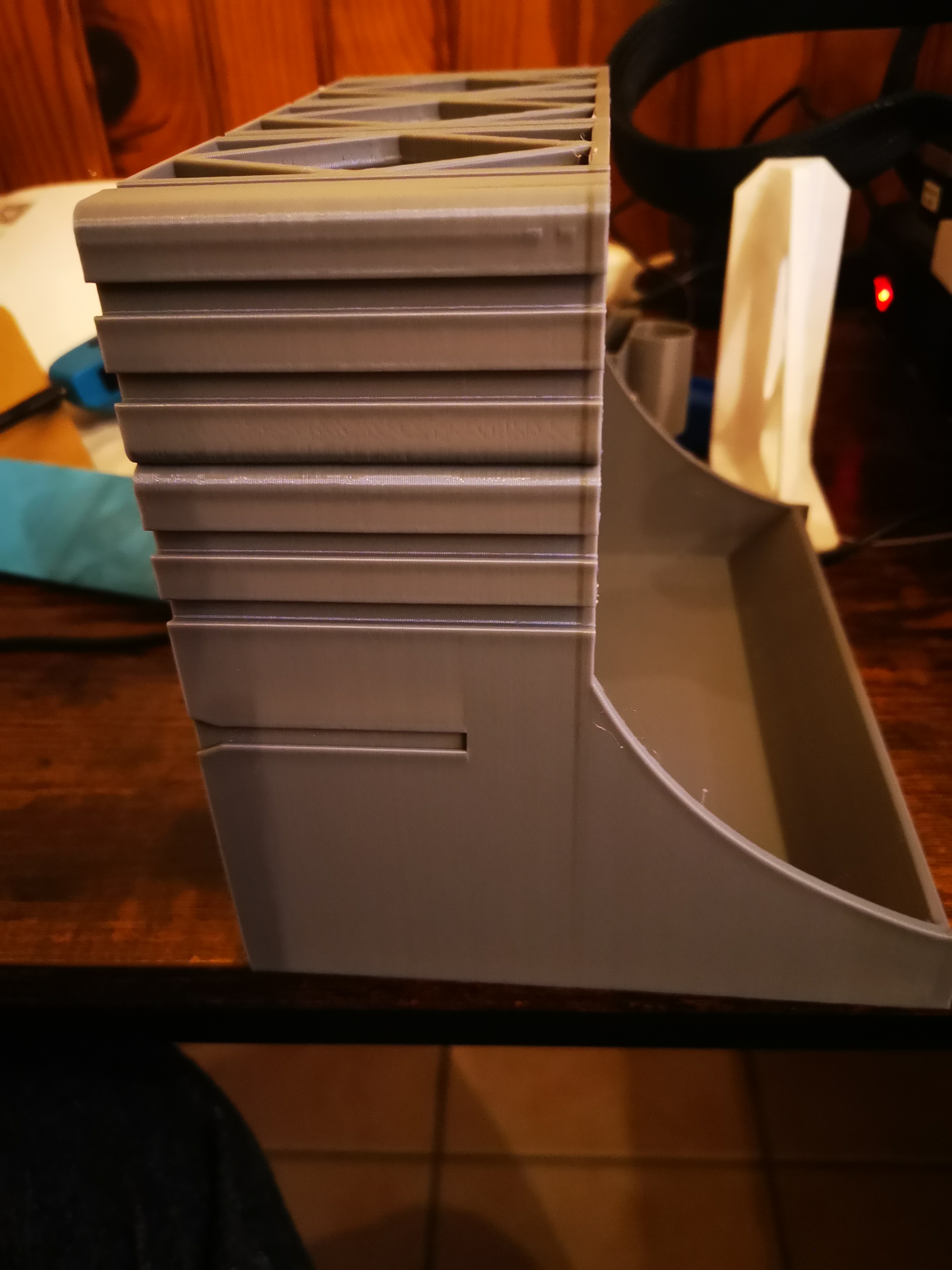 Do đó, tui đã chỉnh sửa hai cái ngăn kéo phía trên cái hộp để giữ kết nối với toàn bộ hệ thống đã tạo. Cái này được đặt ở phần dưới và nhờ có đế lớn hơn nên có thể giúp cải thiện độ ổn định của cả khối.