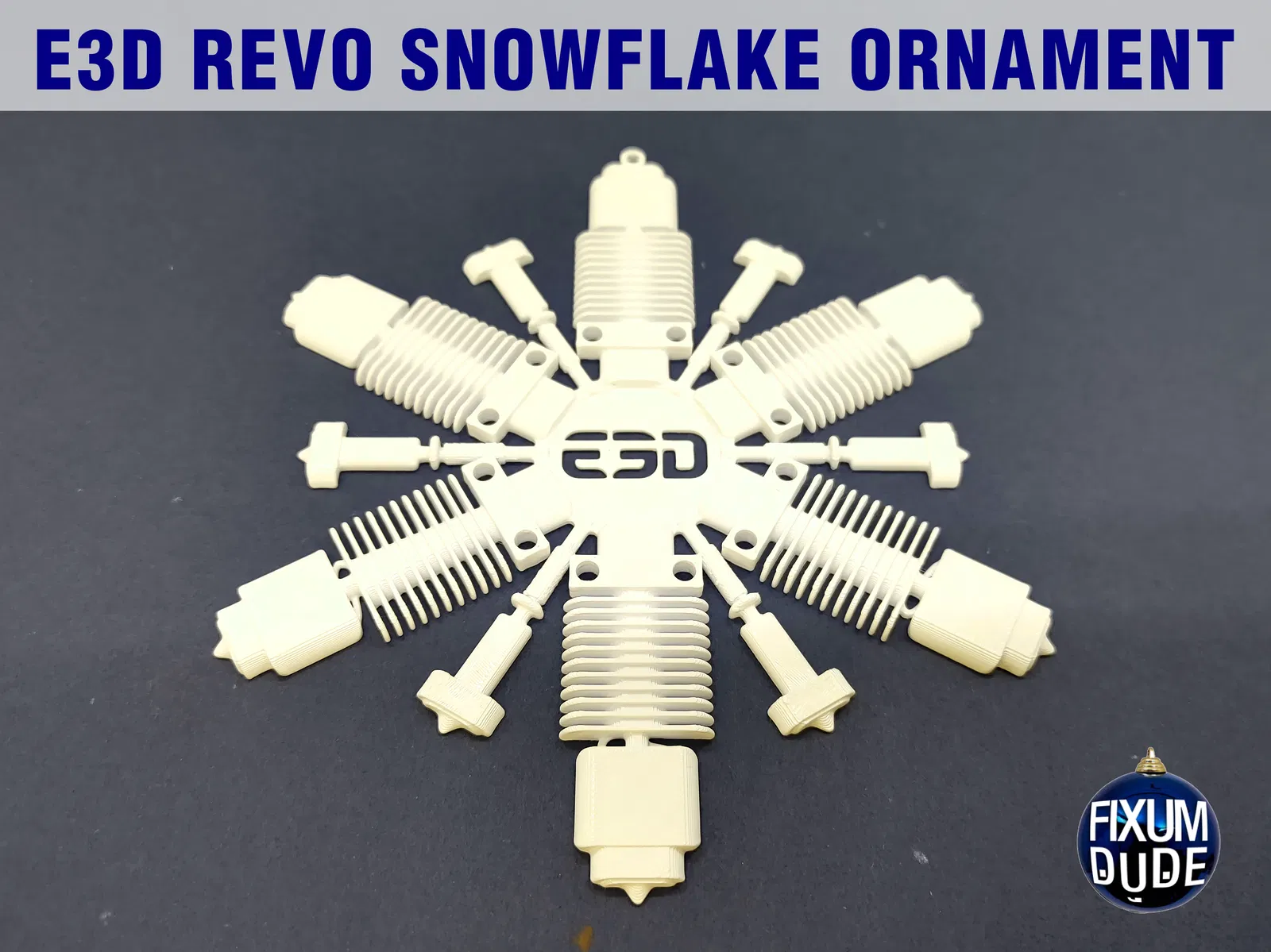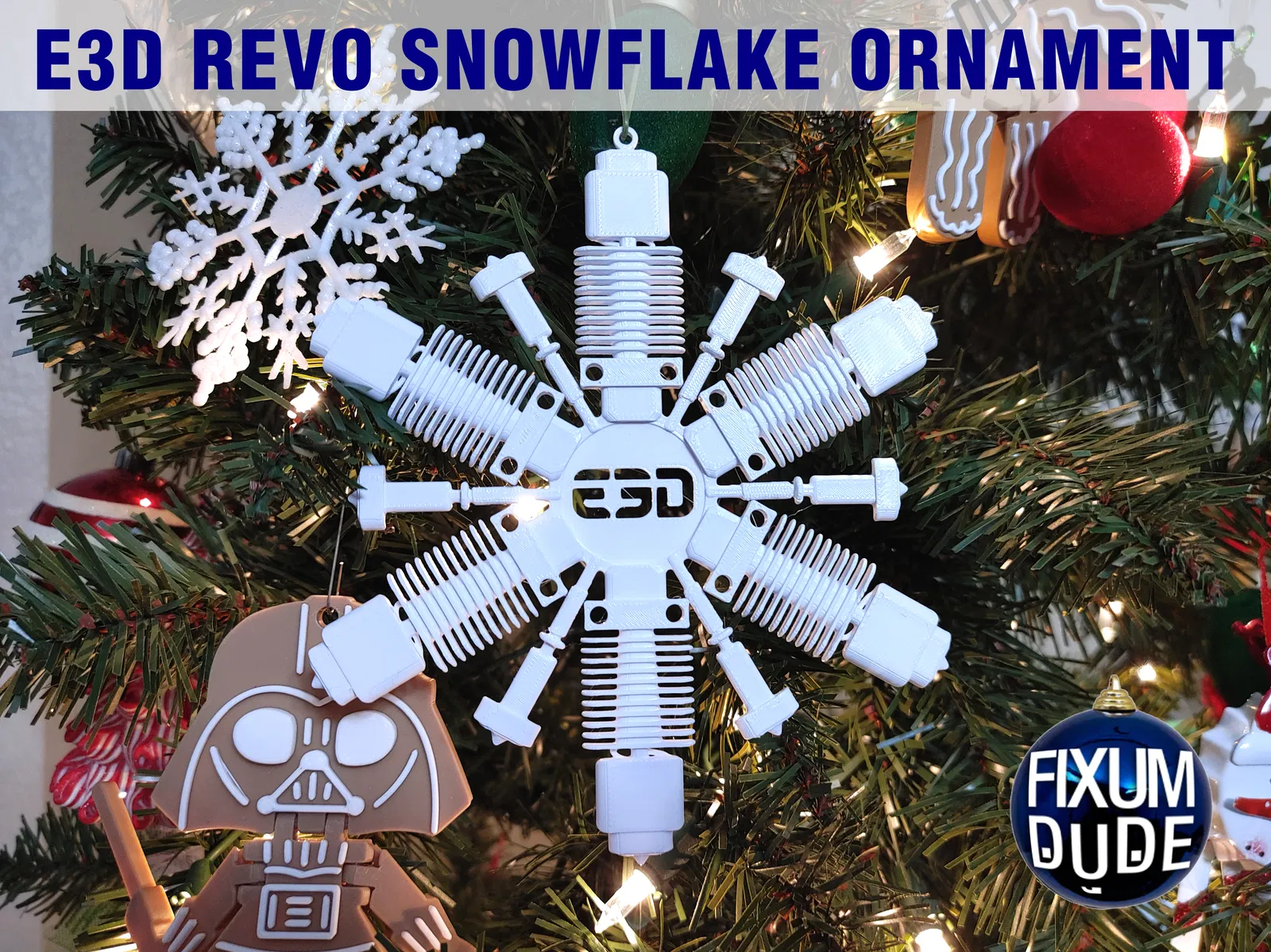 Móc trang trí bông tuyết vui nhộn lấy cảm hứng từ chiếc hotend Revo thông minh của E3D, mang không khí in 3D lên cây thông của bạn.