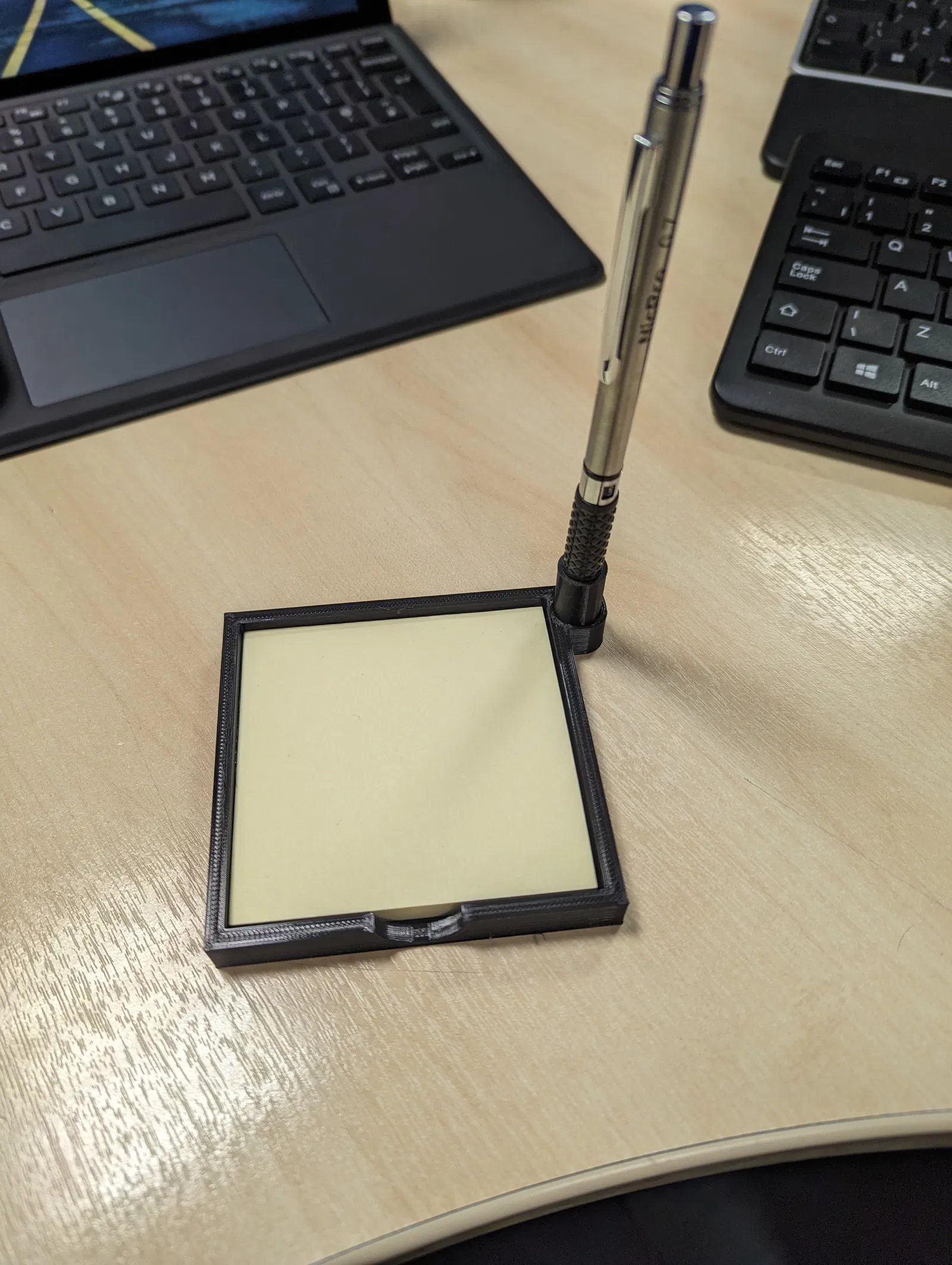Giá đỡ cho giấy ghi chú Post It kích thước 76 x 76mm và hộp đựng bút có thể tùy chỉnh. Chỉ cần tạo một insert có đường kính ngoài (OD) là 12mm. Bạn có thể dễ dàng thay đổi kích thước insert để phù hợp với nhiều loại bút khác nhau.