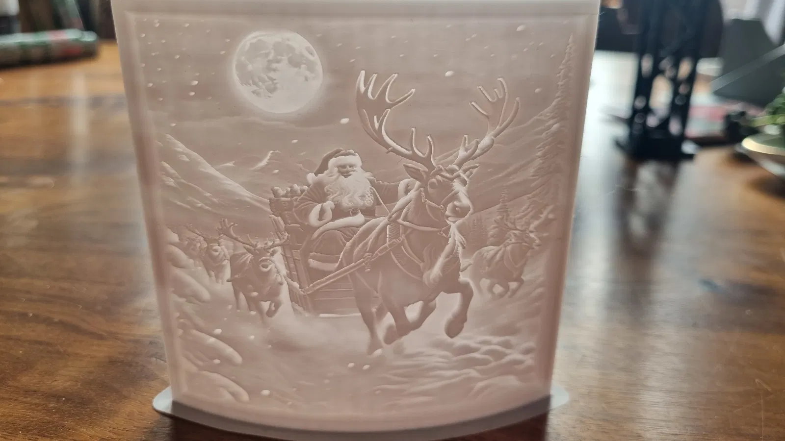 Bức tranh lithophane đẹp mắt từ khung cảnh Giáng Sinh. Thích hợp để trang trí nhà cửa dịp lễ.