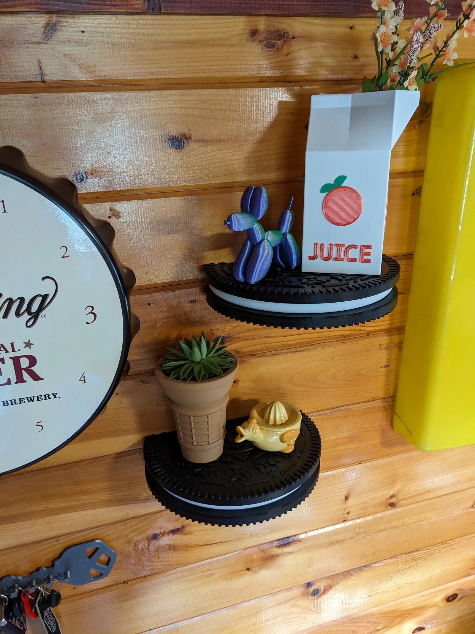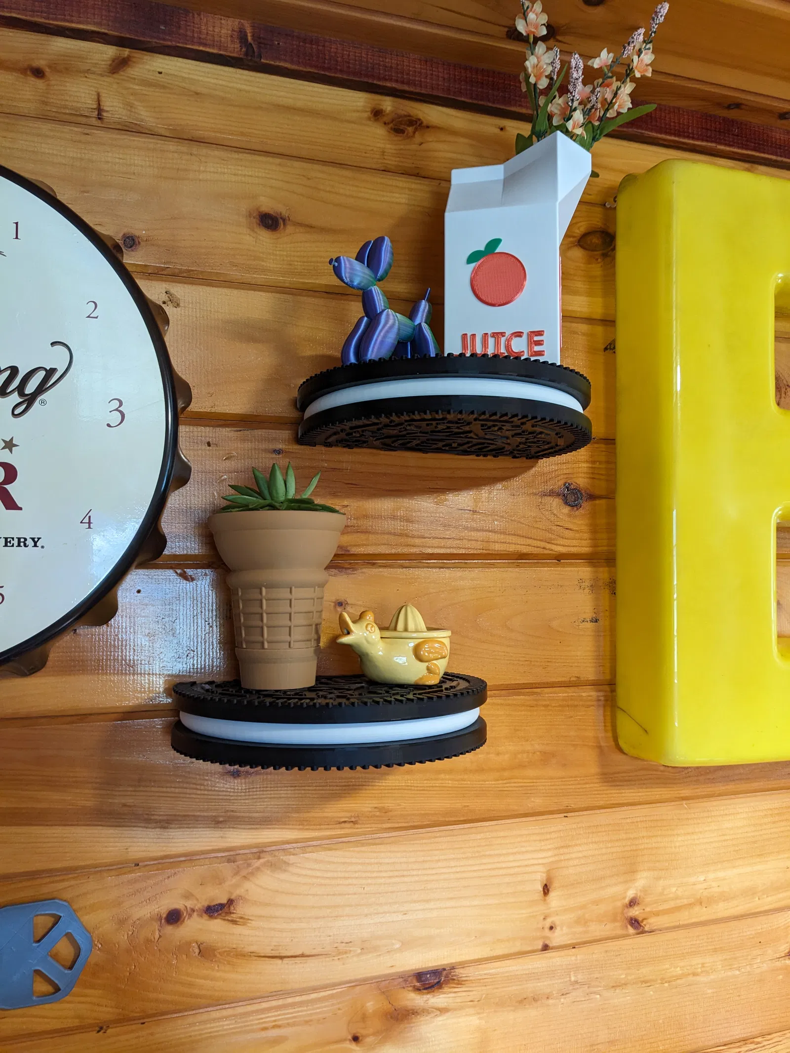 Một chiếc kệ bánh Oreo đẹp mắt! Dùng để trưng bày những món đồ trang trí độc đáo khác trong nhà bạn. Kệ này được in 3 mảnh và ghép lại bằng keo, có giá treo tường đơn giản.