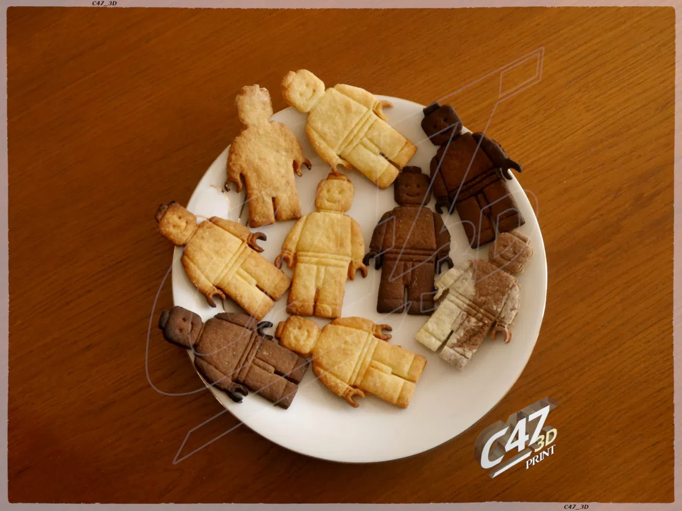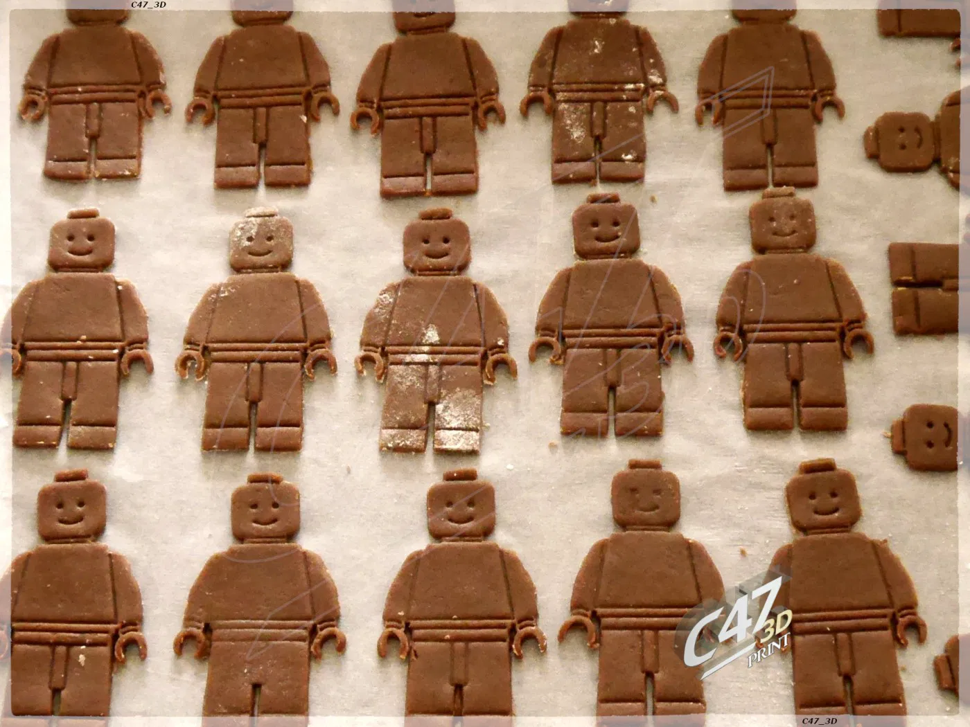 Một cái nhìn thẳng và 3 cái nhìn từ trên xuống (đứng, ngồi, đi) Làm bằng Blender 3D dựa trên bản vẽ minifigure. Ảnh bánh quy bơ - công thức ở dưới Có thể không hữu ích với bột 'dính' --- Xem thêm ảnh: https://www.instagram.com/p/COsdkLArZlX/ https://www.instagram.com/p/CUxLJLqNLxb/ Xem bộ bookmark minifigure của mình: --- Bản 'stamp_short' thì dẹp hơn (đế thấp hơn) nhưng có thể khó dùng hơn. Bạn có thể tiết kiệm khoảng 25% filament khi in bản ngắn (có thể hơn nữa, tùy cài đặt slicer của bạn). Cẩn thận nha. Bột càng dính thì càng khó lấy ra nét sạch. Cách dễ nhất để làm bánh quy này là cắt hình bằng đường viền, đặt 'stamp' vào trong và ấn nhẹ để tạo dấu - Ấn càng mạnh thì dấu càng rõ. Các phiên bản của mô hình nhìn thẳng: * 'outline' - chỉ là đường viền của minifigure; bạn có thể dùng nó với 'stamp' (cắt đường viền, đặt 'stamp' vào trong, nhấc 'outline' ra với sự trợ giúp của 'stamp' và tạo dấu bằng 'stamp').