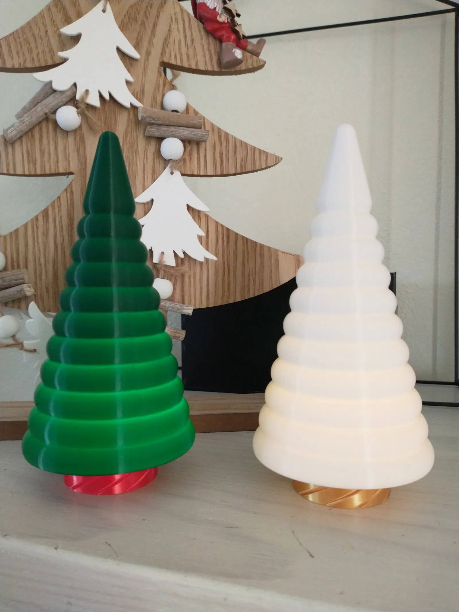 Cây thông Noel cho chế độ vase, vừa với đèn trà LED. Dựa trên một món đồ trang trí cây thông Noel mà tui thấy trong cửa hàng cây cảnh, tui đã thiết kế cây thông này theo cách in bằng chế độ vase và vừa với đế đèn trà của mẫu năm 2022 của tui (https://www.f3d.vn/3d-model/158899-cay-thong-noel-dung-den-tra). Lưu ý: theo phản hồi mới nhất, có vẻ như việc tăng độ rộng đường đùn là cần thiết để tránh bị tách lớp. Bản in trong hình là được in với độ rộng đường đùn 0.80mm cho các lớp bao quanh.