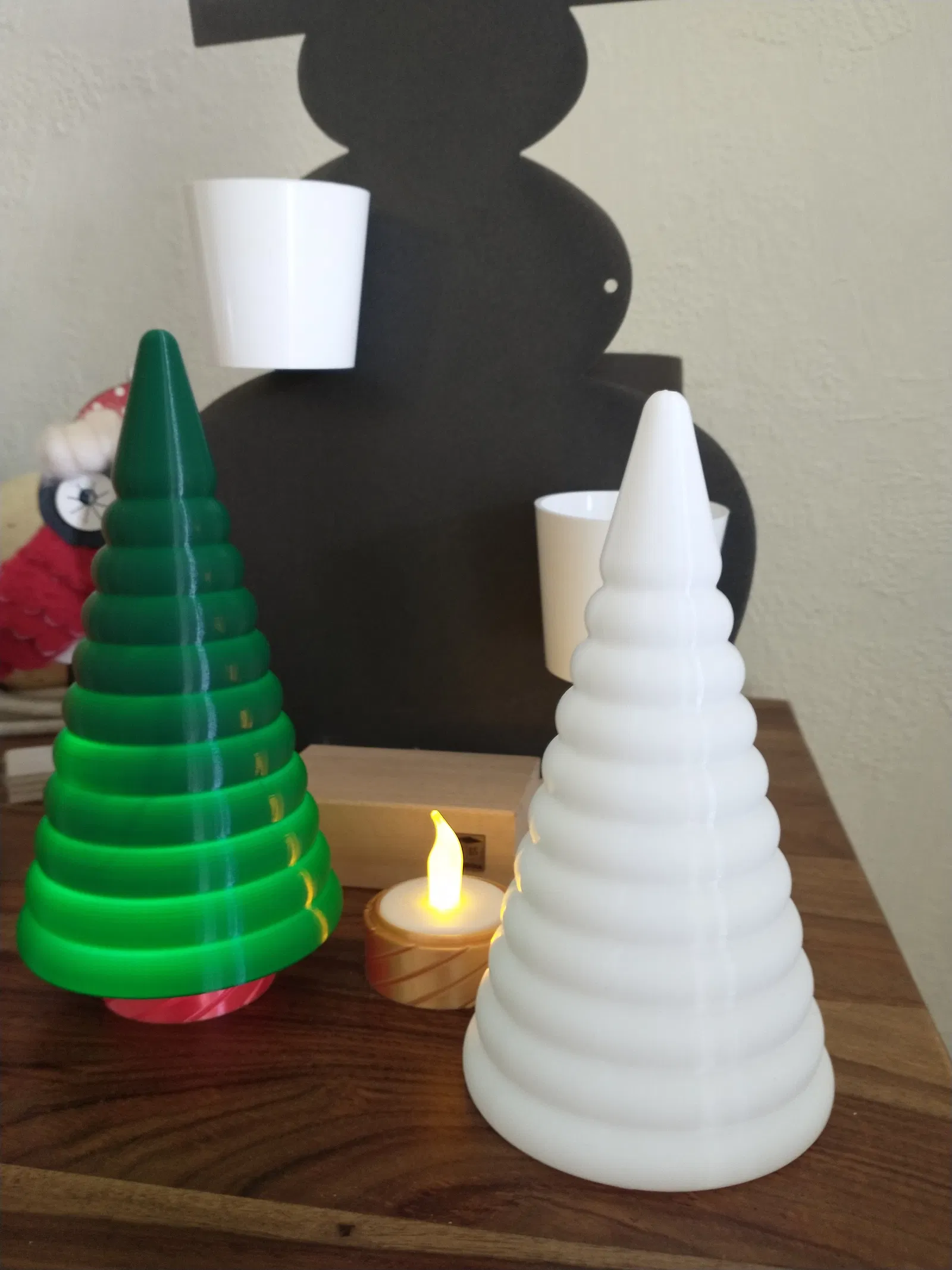 Cây thông Noel thiết kế theo chế độ vase, vừa vặn với đế đèn trà LED. Mẫu này được lấy cảm hứng từ đồ trang trí cây thông Noel, thích hợp để in và trang trí nhà cửa dịp Giáng Sinh.