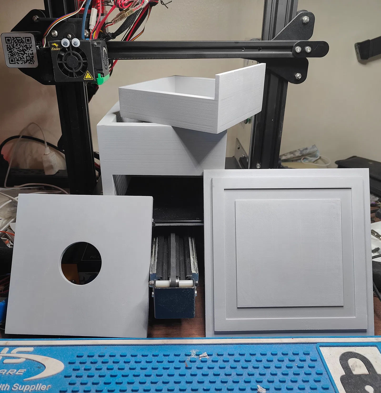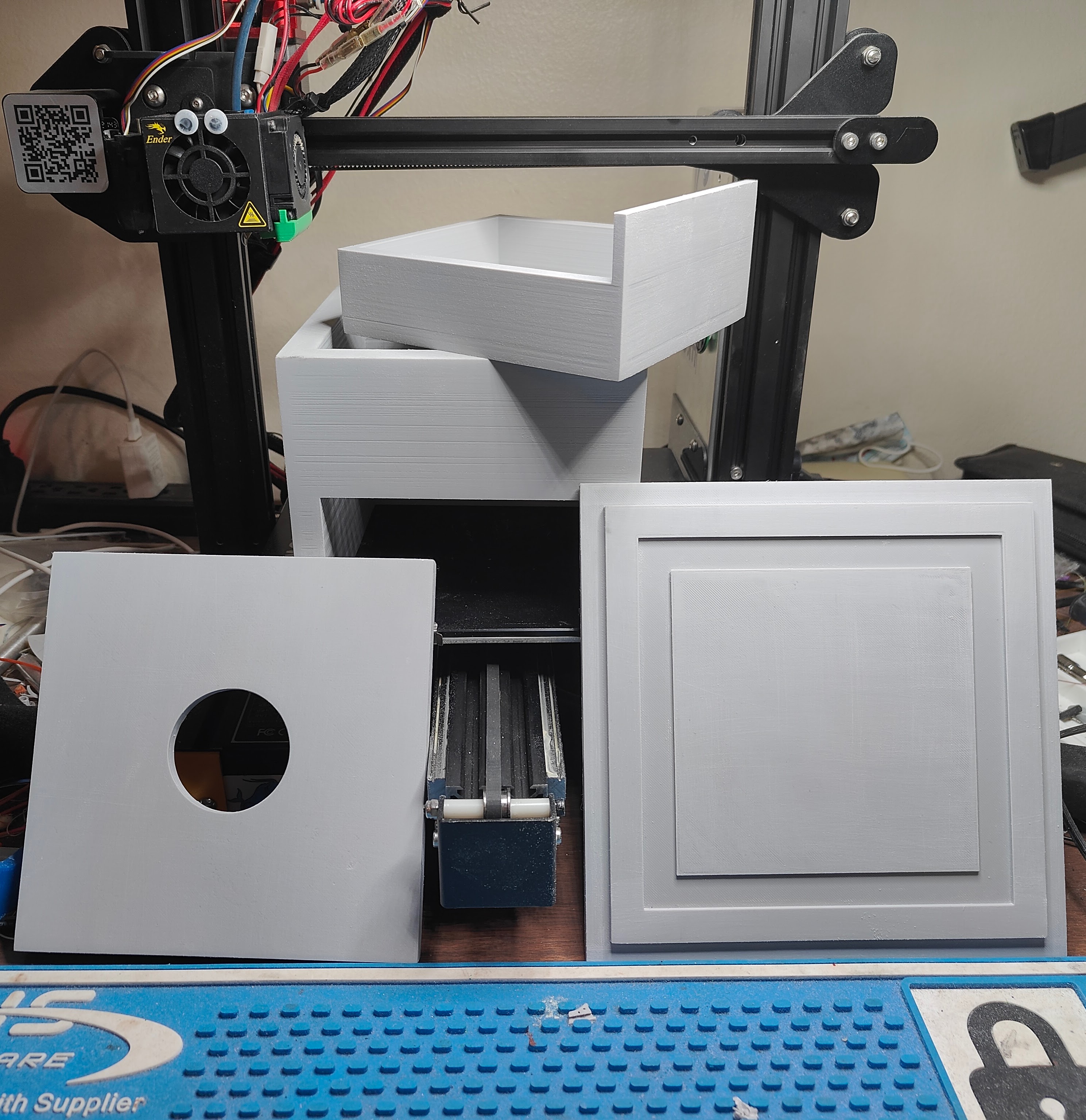 Cái hộp này tui tự thiết kế để gắn máy xay cà phê cho thằng em trai tui đó. Tui có nhuộm PLA bằng mực cồn để giả vân gỗ cho nó đẹp.