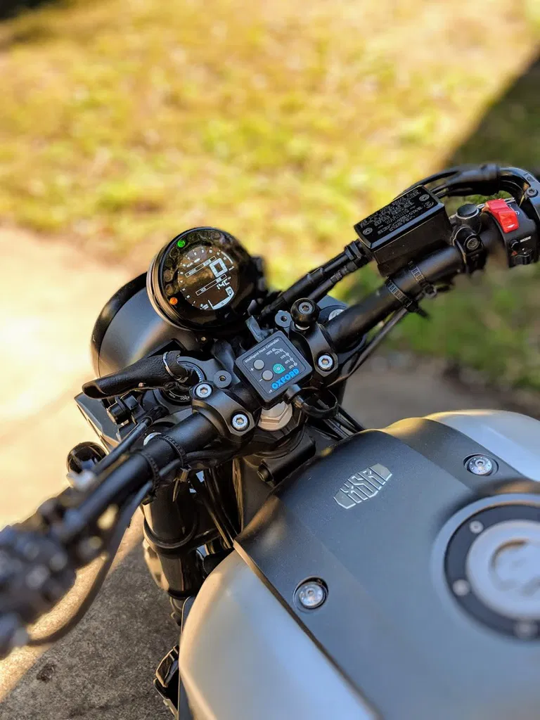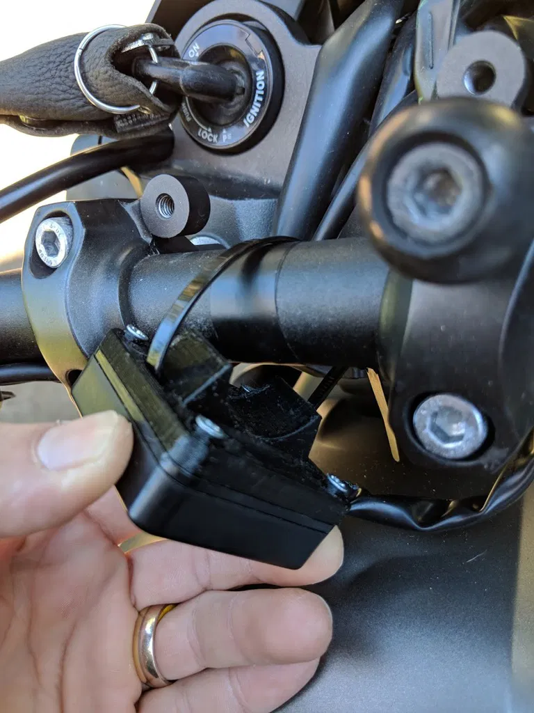 Hình chụp lúc gắn vô giữa hai cục kẹp ghi đông của chiếc XSR900 của mình.