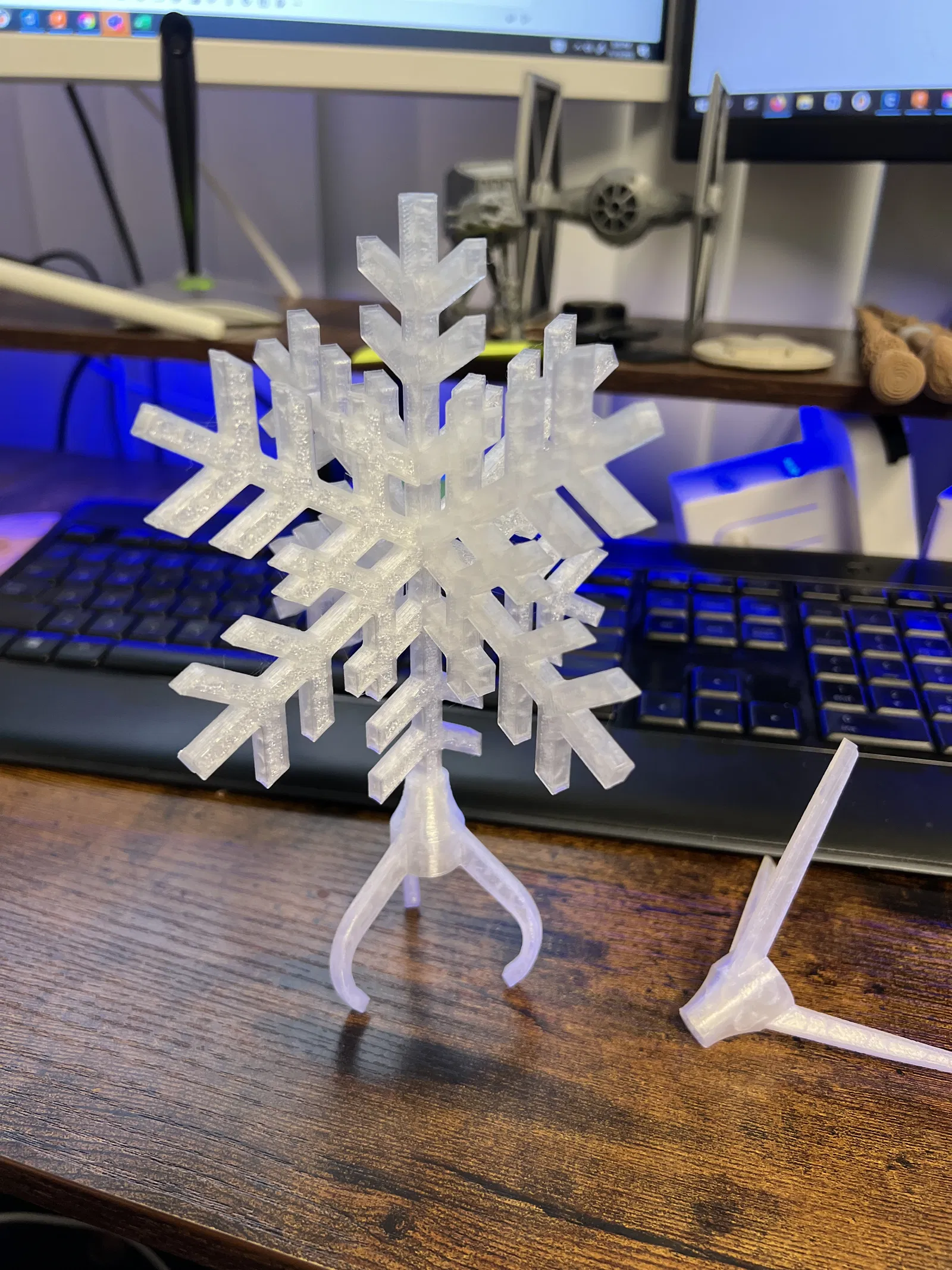 Sau đó, in "Chân Đế Bông Tuyết" để đặt bông tuyết trên bề mặt phẳng hoặc in "Càng Cua Bông Tuyết" để gắn lên cây thông của bạn.