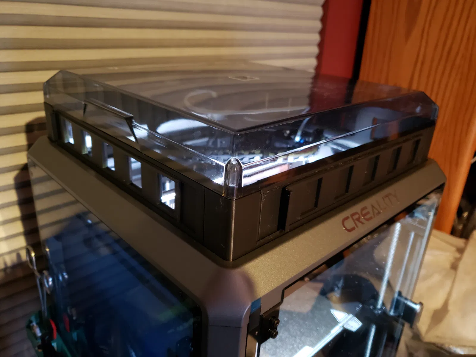 Nó sử dụng cùng các mảnh góc, nghĩa là các đầu có khe tròn. Các khe tròn cần có vật liệu hỗ trợ, tôi thấy việc in khe phẳng hoạt động tốt nhất với vật liệu hỗ trợ tối thiểu ở các đầu, nhưng K1 không đủ lớn. Tôi đã nghĩ có lẽ dễ dàng hơn nếu kéo dài các mảnh góc để các mặt (khe và thanh trượt) có thể đặt phẳng trong K1. Tất nhiên điều đó sẽ làm giảm kích thước của các lỗ thông hơi, luôn có những sự đánh đổi.