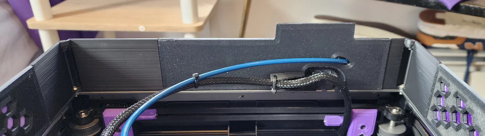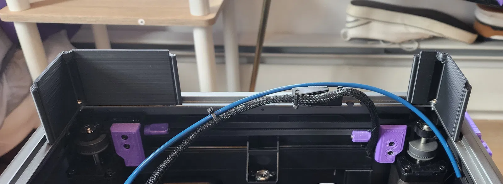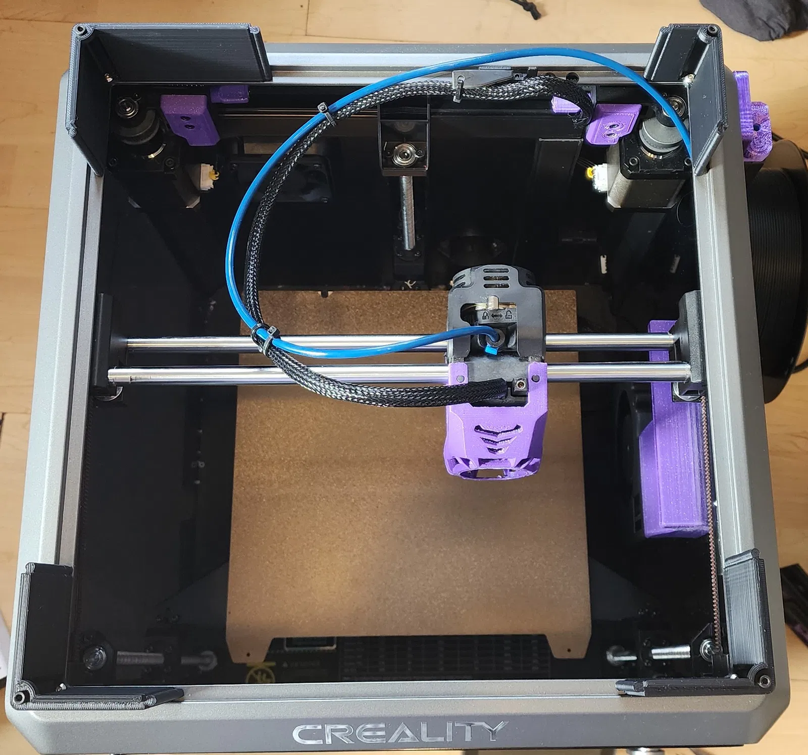 Trong bốn cái miếng góc, hai cái phía sau bên trái và sau bên phải có sự khác biệt do có vách ngăn đặc biệt cho ống bowden và dây của đầu in.