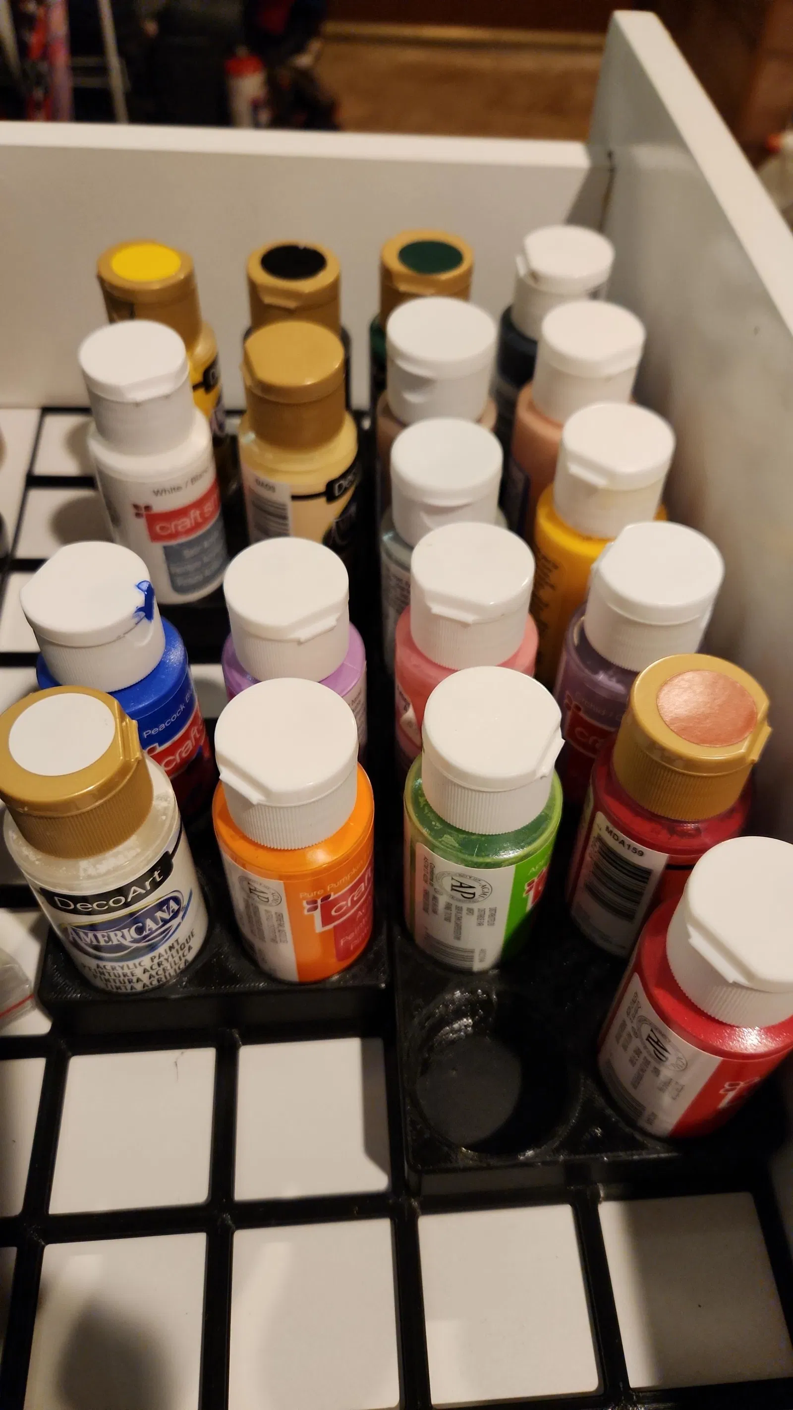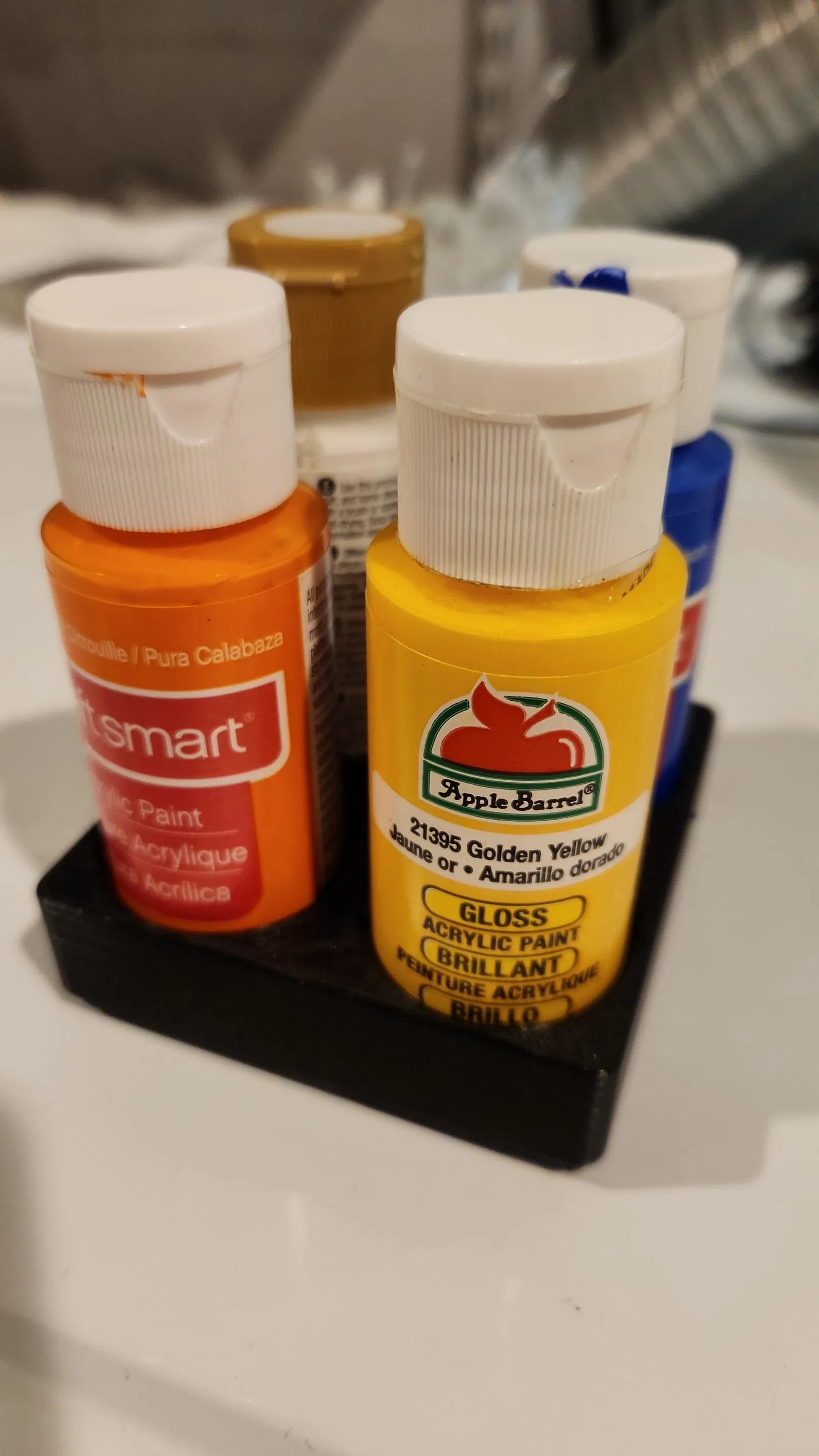 Biết là có nhiều mẫu này lắm rồi, nhưng tui muốn làm riêng cho mấy chai sơn 2oz của tui. Đường kính lỗ là 35mm nha. Nhớ là đường nối Z seam có thể làm nó hơi khít đó. Chà nhám chút xíu cho bớt cái đường nối là ok liền à.