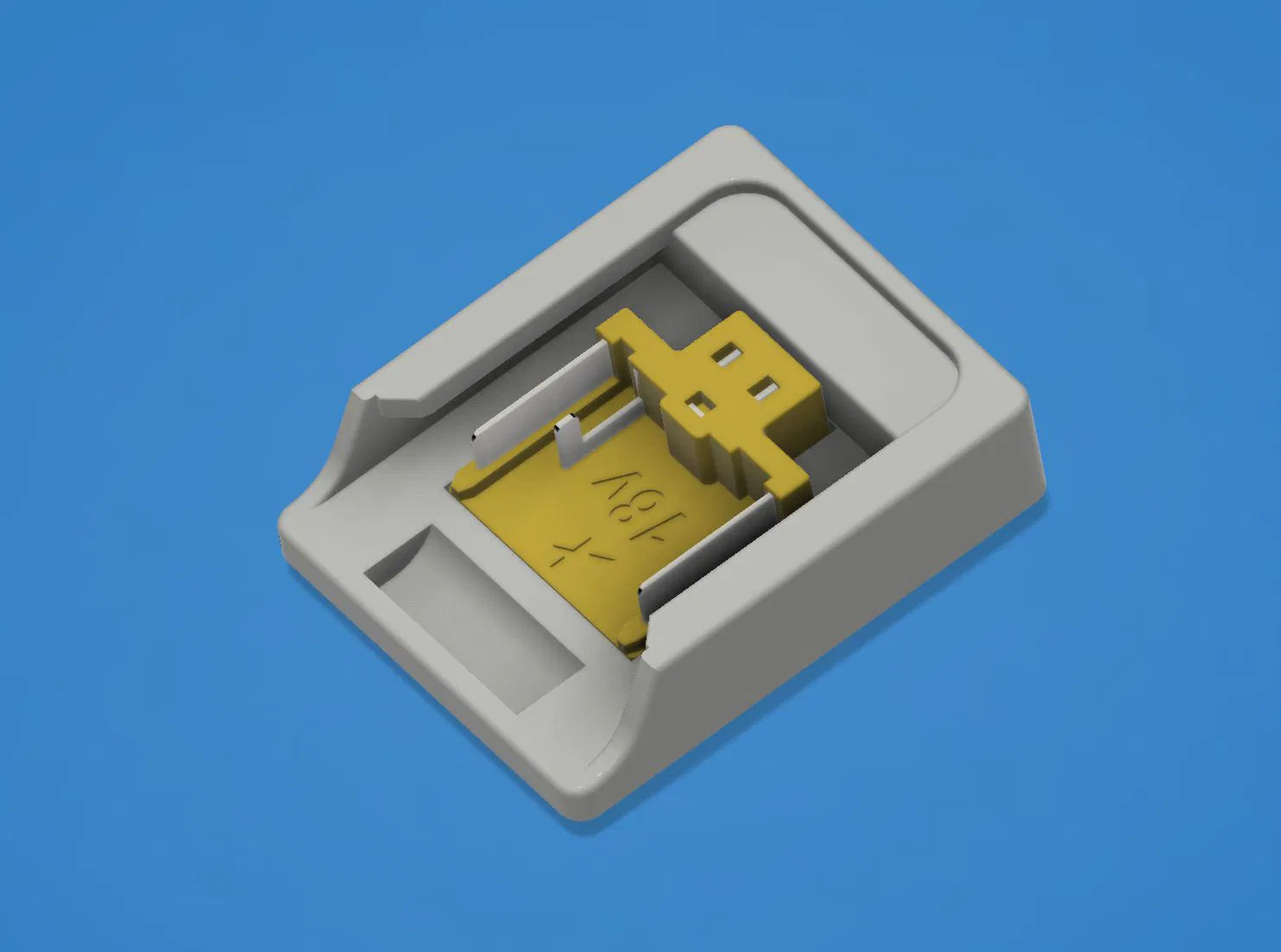 Nếu bạn đã từng muốn tận dụng những cục pin Makita LXT 18V cho các dự án không phải của Makita, bạn sẽ cần một cách chắc chắn và gọn gàng để tiếp cận các cực của pin. Bản in 3D này cung cấp một tấm nhựa gắn vào pin, bấm vào như dụng cụ điện của Makita. Các kết nối đầu cuối điện được tái tạo bằng cách sử dụng một bộ phận thay thế chính hãng của Makita (643852-2), được dán vào vị trí. Bạn sẽ cần tự tìm mua những bộ phận này, nhưng chúng tương đối rẻ cho một bộ phận của Makita.