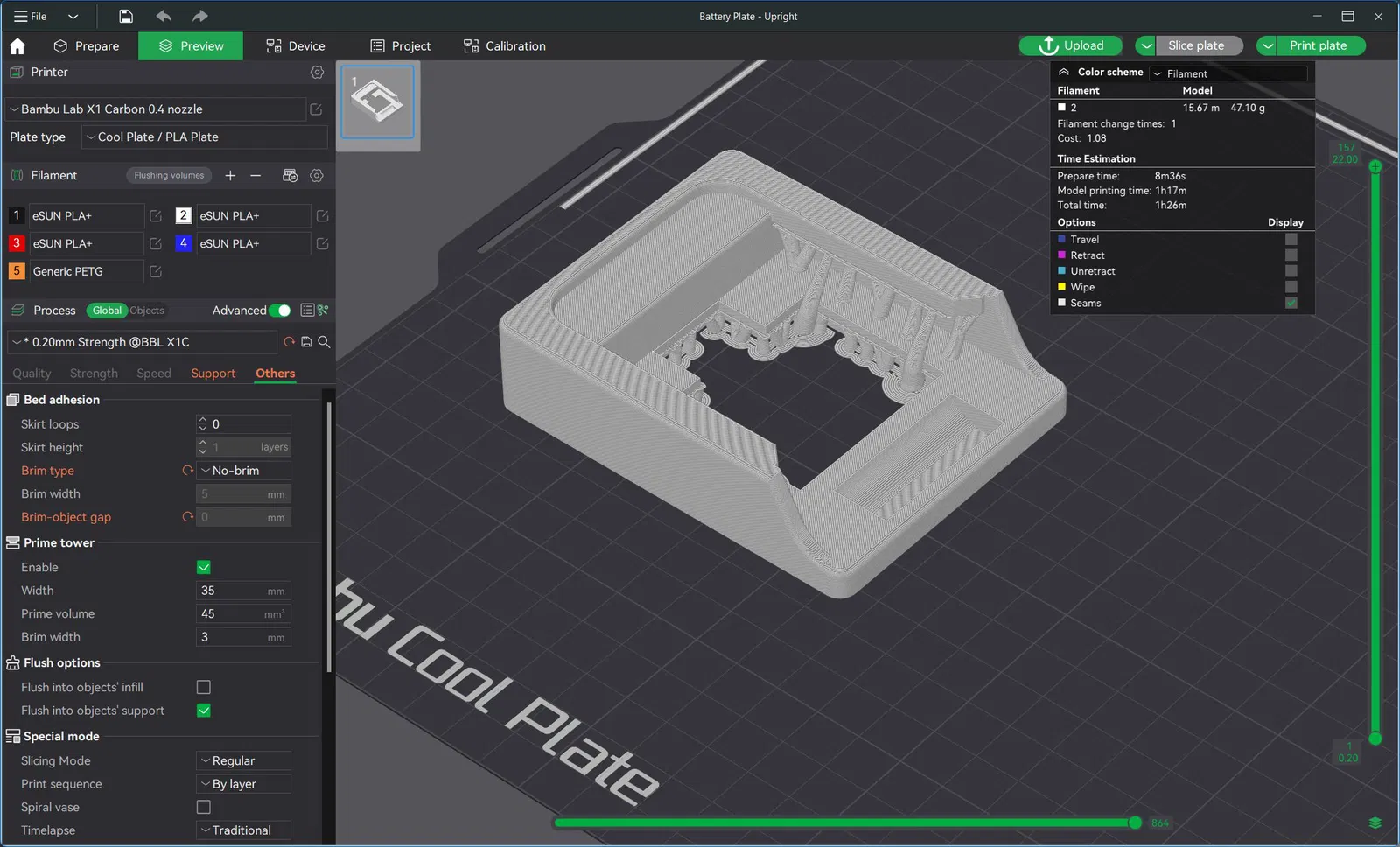 Bản in của tôi được làm bằng sợi PLA+ eSUN 1.75mm màu đen, với chiều cao lớp 0.2mm và mật độ điền 15% trên máy in Bambu X1 Carbon. Cần có vật liệu hỗ trợ khi in.