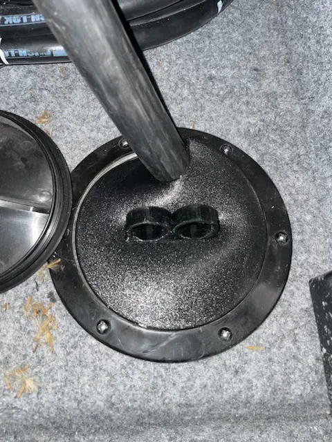 Đây là một cái cover dùng khi rút dây điện 50 Amp ra khỏi RV để giảm nguy cơ chuột chui vào. Mô hình gồm 2 phần.