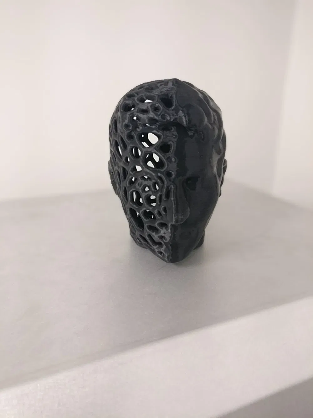 Mô hình độc đáo "Voronoi Two-Face" kết hợp kỹ thuật scan 3D khuôn mặt với hiệu ứng voronoi đầy nghệ thuật. Một nửa là khuôn mặt được scan chi tiết, nửa kia biến tấu với các mảng hình học voronoi ấn tượng. Mô hình này cần sử dụng supports khi in để đảm bảo chất lượng tốt nhất.
