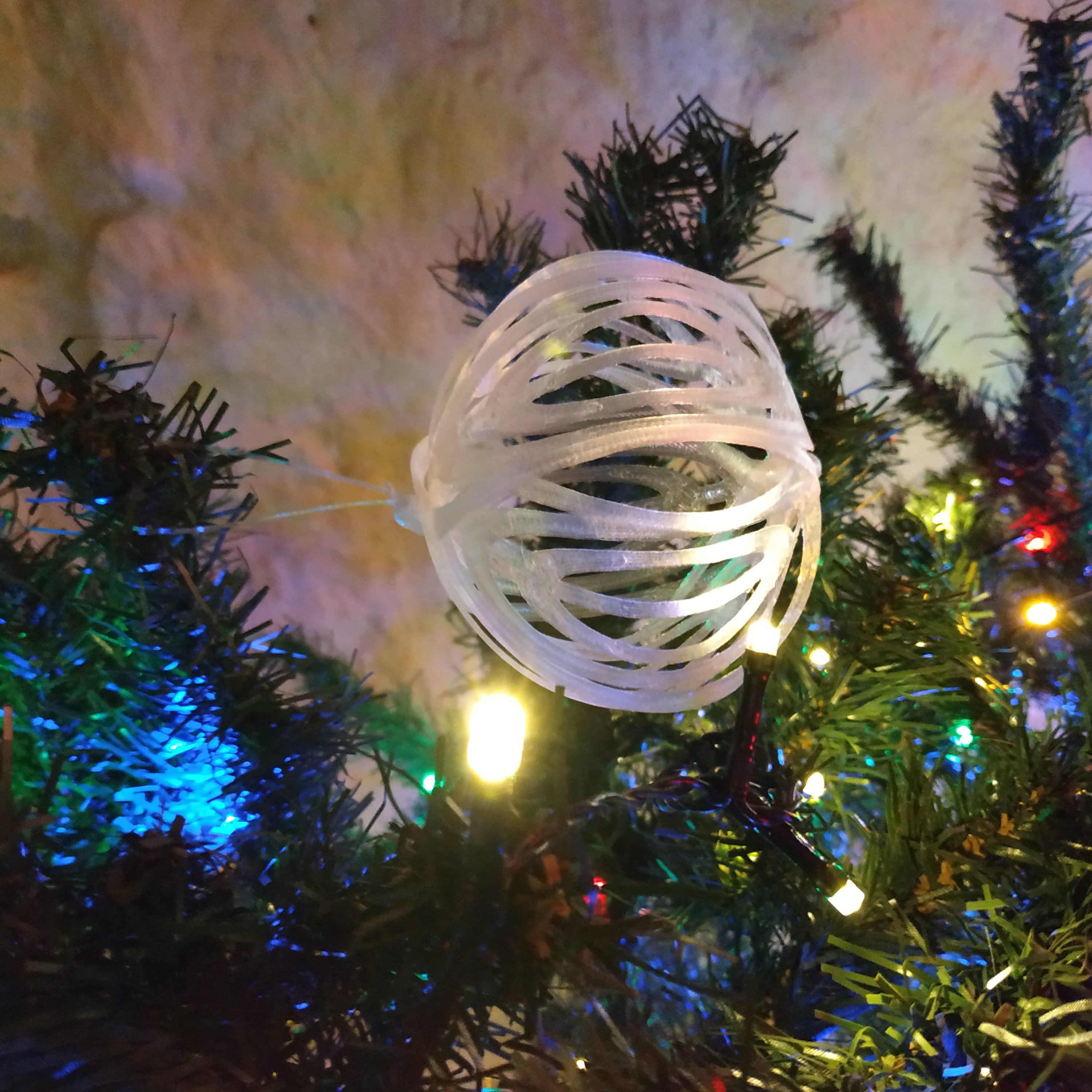 Một quả châu Giáng sinh thí nghiệm, gồm 7 bộ phận có thể tùy chỉnh. Tải về file .blend gốc để tự do sáng tạo. Phần nối gài đơn giản, bạn có thể tận dụng chân đế in để làm dây treo.