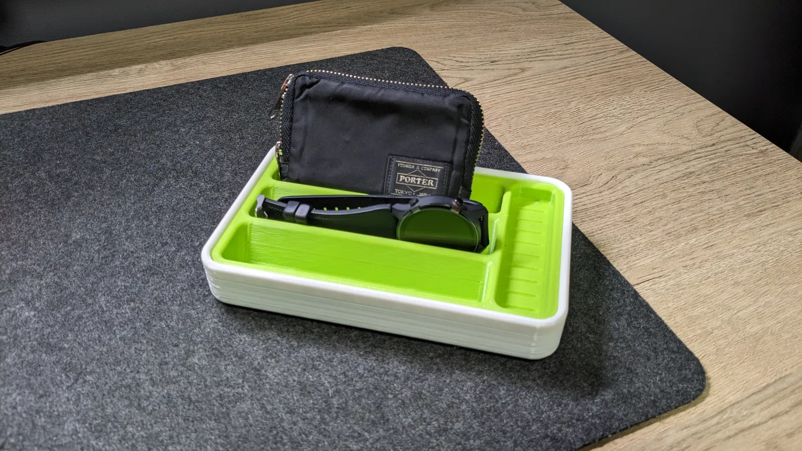 Khay EDC cơ bản, thiết kế đơn giản để bạn có thể đặt điện thoại, ví, kính và những vật dụng cá nhân khác một cách gọn gàng. Rất phù hợp cho những ai muốn sắp xếp đồ đạc trên bàn làm việc hay bàn đầu giường.