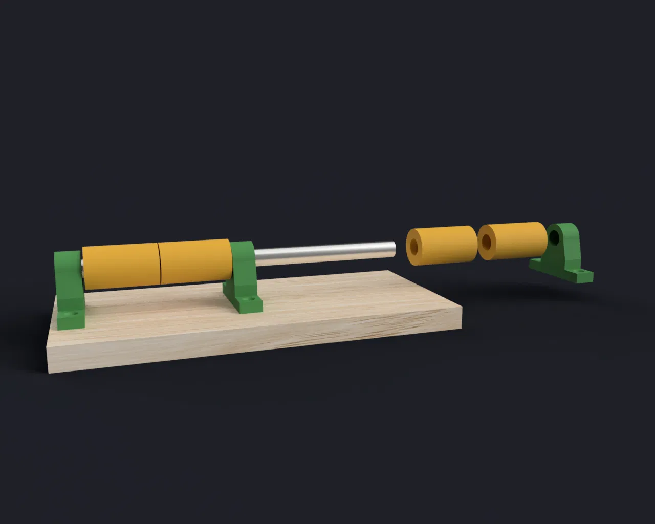 Các bộ phận để tự chế chân đế con lăn. Bạn sẽ cần một trục thép tròn 8mm và một tấm ván gỗ để bắt con lăn vào. Lý tưởng cho các dự án in 3D DIY của bạn.