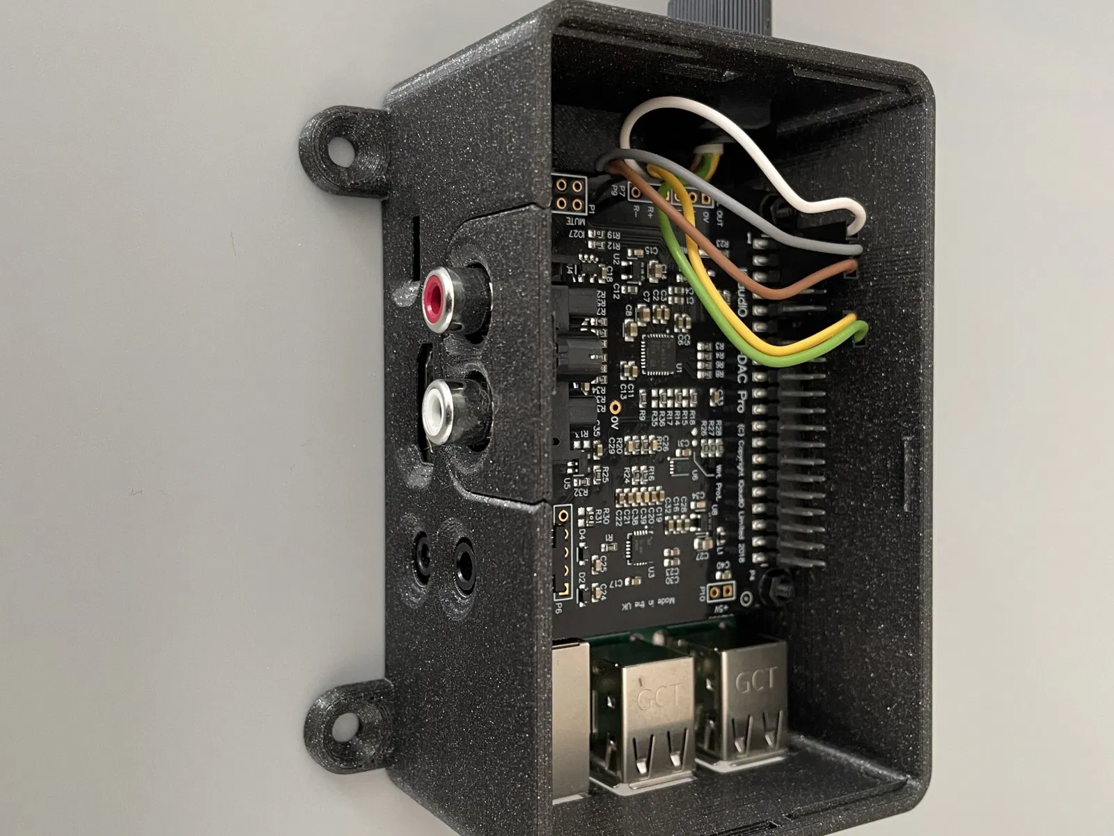 Trường hợp cho Raspberry Pi 3 với IQAUDIO DAC Pro Hat, với việc sử dụng ghim GPIO và tab vít để gắn vĩnh viễn.