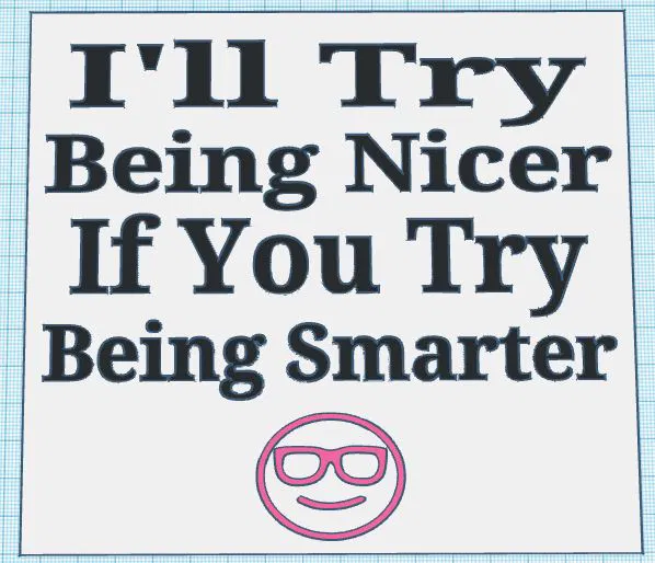 Đây là một tấm biển đơn giản được thiết kế trong Tinkercad. Phù hợp cho những ai muốn thể hiện ý chí thử nghiệm hoặc tạo điểm nhấn độc đáo cho không gian làm việc. Tấm biển này là một minh chứng cho sự sáng tạo và khả năng của Tinkercad trong việc tạo ra các mô hình 3D cá nhân hóa.
