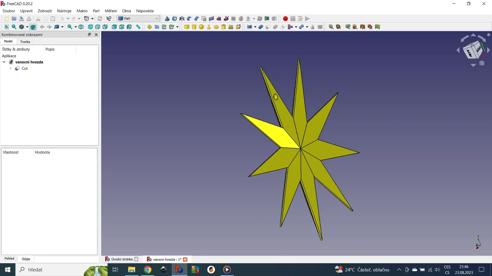 Dekorativní Hvězda, có thể in 2 cái và dán lại với nhau bằng keo dán nhanh, được in từ filament PLA.