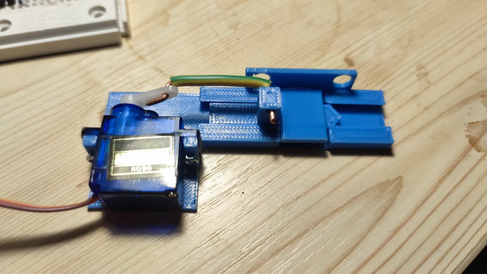 Bộ phận cơ khí cho khóa điều khiển bằng servo dùng cho hộp kho báu. In bằng PETG trên Prusa Mini, vật liệu có vẻ đủ chắc chắn. Yêu cầu độ lấp đầy 50%, không dùng brim và support.