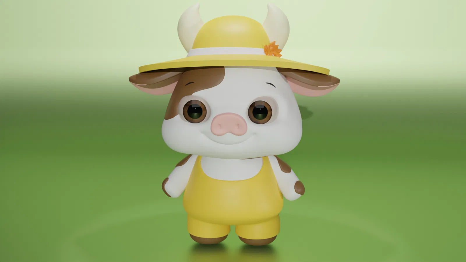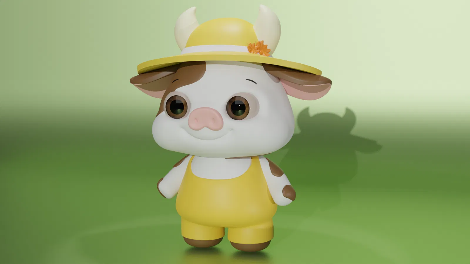 Một mô hình bò con cực kỳ dễ thương, giống như một cô bò nông dân đáng yêu. Hoàn hảo làm đồ trang trí hoặc móc khóa nhỏ xinh. Mô hình này được tạo ra bằng Blender, rất thích hợp làm quà tặng.