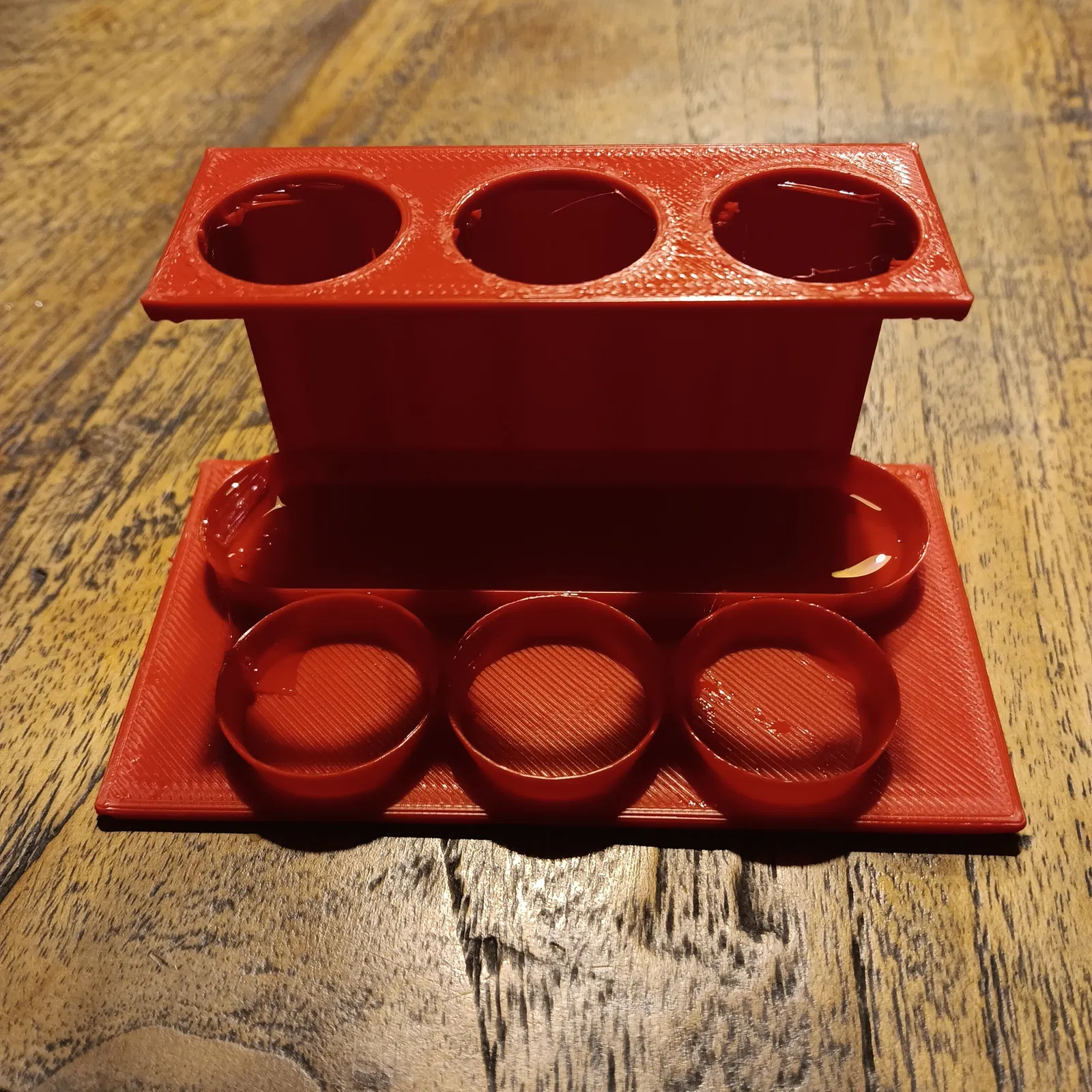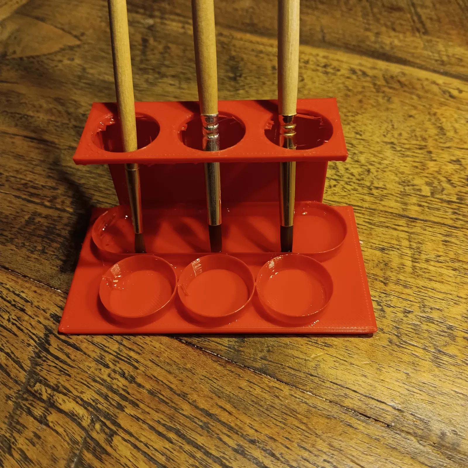 Cái giá đỡ cọ vẽ đơn giản này được thiết kế để anh em dễ dàng in ra mà không cần dùng tới support. Để đồ cọ vẽ gọn gàng, tiện lợi, không tốn diện tích.