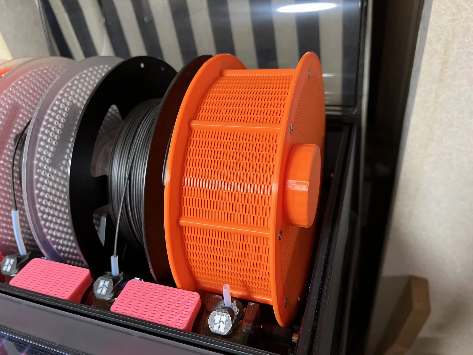 Hộp này có thể chứa vừa đủ 1 kg gel hút ẩm. Nó cũng có thể đặt vào trong khay AMS vì có kích thước tương đương với cuộn filament.